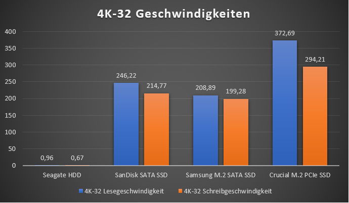| Benchmark: Full System Drive (PCMark 10) Via PCMark 10 Professional habe ich (nachträglich) die P5 mit einigen Konkurrenten verglichen. Neben dem Benchmark Score, den man sich online gegenüber anderen Festplatten anzeigen lassen kann, werden auch die Bandbreite und die durchschnittliche Ladezeit in µs angezeigt. Durch den Vergleich wird klar: Die Crucial P5 spielt mindestens im hohen Mittelfeld, wenn nicht sogar in der oberen Klasse. Kopier-Benchmark Für die Feststellung der Kopiergeschwindigkeit habe ich dann doch auf AS SSD zurückgegriffen. Kopiert wurden ISO, Programm und Spiel, allerdings jeweils 10GB, wodurch das Ergebnis wesentlich realitätsgetreuer ist als bei jenen, die diesen Test mit nur 1GB durchführen (schließlich unterstützt bei nur 1GB der RAM-Speicher): Folgend habe ich als Beispiel GTA V auf der Festplatte dupliziert: Ladezeiten Ebenfalls interessant ist natürlich, wie es um die Ladezeiten steht. Hierfür habe ich alle Festplattentypen mit Windows 10 Professional bespielt, die Spiele GTA V und WatchDogs 2 installiert, und die Festplatten zu je 50% zugepackt (Bei der Samsung mit nur 256GB Speicherkapazität lag die Auslastung der Kapazität bei 56%). Wer sich also durch eine PCIe M.2 SSD eine spürbare Steigerung von Ladegeschwindigkeiten erhofft, könnte enttäuscht werden. Hier reicht auch eine kostengünstigere SATA SSD. ____________________________________ Crucial Storage Executive Mit dem kostenlos herunterladbaren Tool Crucial Storage Executive kann sichergestellt werden, dass die SSD durch regelmäßig erscheinende Updates immer auf dem aktuellen Stand bleibt. Außerdem lässt sich die Speicherplatzbelegung anzeigen, die Temperatur überwachen und vieles mehr. ____________________________________ Fazit Erinnere ich mich an die Zeit, zu der ich lediglich 2 HDDs besaß (und das war noch bis in den September dieses Jahrs hinein so), und vergleiche diese mit der jetzigen, so bin ich von den Vorteilen seitens SSDs absolut überzeugt. Kein Brummen mehr, stark verkürzte Ladezeiten und wesentlich schnellere Lese-/ und Schreibgeschwindigkeiten. Vergleiche ich nun aber meine noch immer verbaute SATA SSD, die vorherige M.2 SATA SSD und die jetzige M.2 PCIe SSD, so ist der Unterschied nicht mehr so hoch. Die Differenzen in Punkto Ladegeschwindigkeiten sind für mich nicht wesentlich spürbar. Anders sieht es jedoch z.B. beim Entpacken von Dateien aus oder aber der Verschiebung solcher auf der Crucial P5. Die hierbei erzielbaren Geschwindigkeiten sind ungewohnt – im positiven Sinne. Preis-/Leistungstechnisch empfinde ich die P5 zumindest in der von mir getesteten 1 TB-Variante als gut. Fraglich ist allerdings, ob ein Upgrade von einer normalen SSD zu einer PCIe SSD für jeden sinnvoll ist. Abschließend möchte ich die für mich relevantesten Pro-/ und Contra-Punkte nochmal aufführen: Pro: + Die Lese-/ und vor allem Schreibgeschwindigkeit konnten mit 3.515 MB/s / 3.302 MB/s gegenüber den Herstellerangaben übertroffen werden + Lese-/ und Schreibgeschwindigkeit erreichen das maximal erreichbare von PCIe 3.0 x4 + bessere Temperaturkontrolle dank 2 verbauter Sensoren + praktische Software Contra: - ohne den zusätzlichen Kühlkörper bin ich mir sicher, dass Temperaturen im unangenehmen Bereich erreicht werden könnten - Lese- / Schreibgeschwindigkeit liegt bei 4K-32 niedriger als ich es erhofft hatte Ich bedanke mich bei der Redaktion und Crucial für die Möglichkeit, die Crucial P5 getestet haben zu dürfen. WaKü: MSI CoreLiquid 240R Netzteil: Seasonic Fanless PX-500 Gehäuse: Sharkoon RGB Flow Mein Leser-Test Crucial P5: bit.ly/2MlhFnA Mein Leser-Test be quiet! Pure Loop 280mm: bit.ly/355eoPW Folgende Benutzer bedankten sich: Marcel. |
