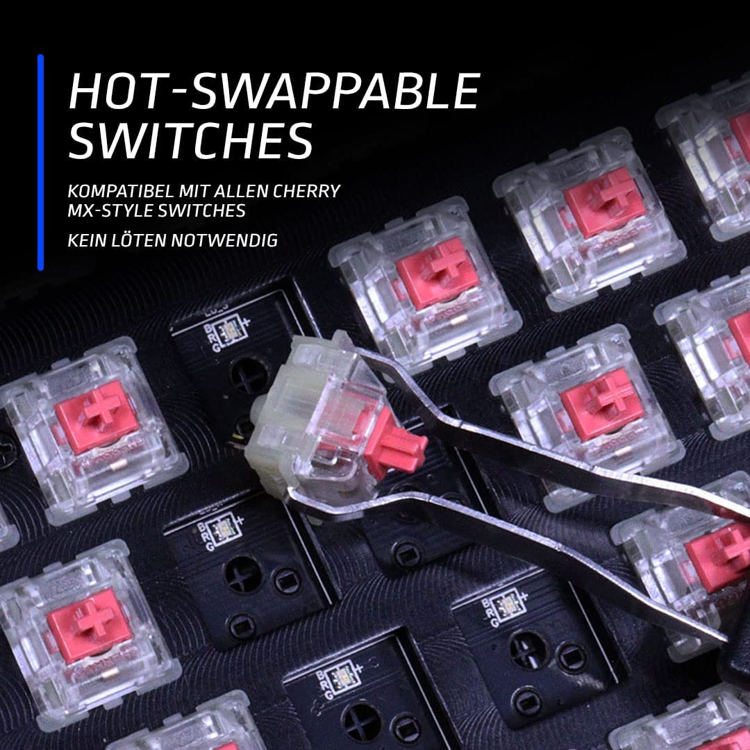 - Hot-swappable Cherry MX Switches - nutze original Cherry MX Switches tausche sie gegen jeden anderen kompatiblen Switch