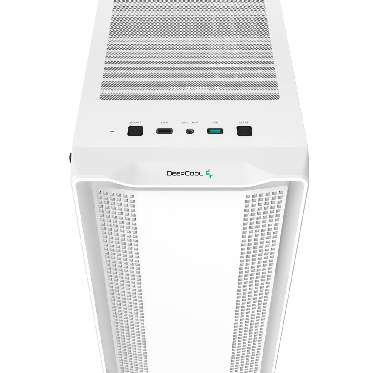 Die DeepCool CC560 und CC560 WH Mid-Tower-Gehäuse verfügen über vier vorinstallierte 120-mm-Lüfter mit einfarbigen LEDs, die für einen hohen Luftstrom und gute Kühlleistung durch das teilweise offene Frontpanel sorgen sollen. Auch an ausreichend Platz für AiO-Wasserkühlungen ist gedacht worden: