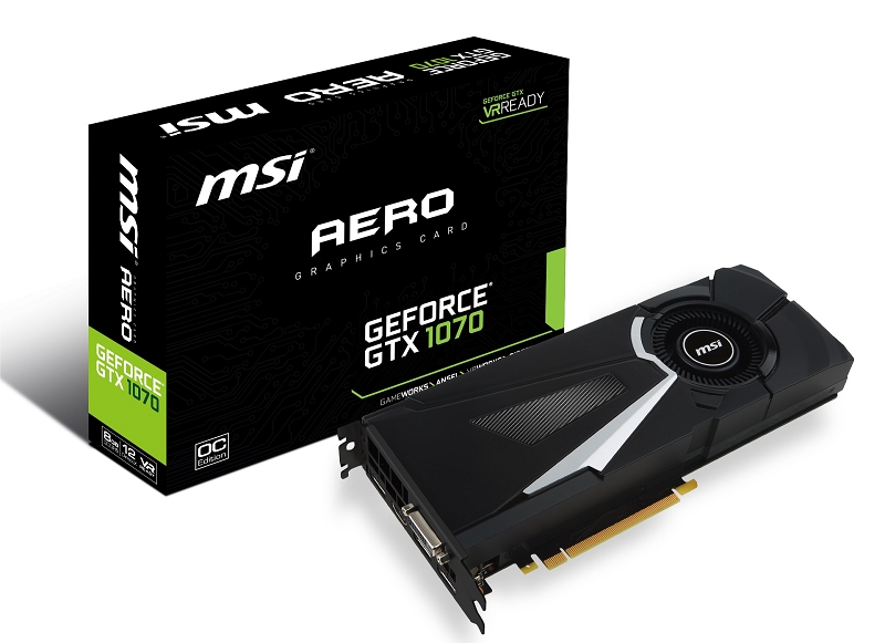 Zu guter Letzt - die GTX 1070 AERO 8G OC. Diese Karte stellt MSIs Einstiegsklasse im Segment der GTX-1070-Custom-Karten dar. Ausgestattet mit Solid-Caps und einer Kühlung mit Radiallüfter soll sie eine solide Grundlage für einen leistungsstarken Gaming-Rig sein. Trotzdem verpasst MSI der Karte eine Werksübertaktung mit 1531 MHz im Basetakt und 1721 MHz im Boostmodus.