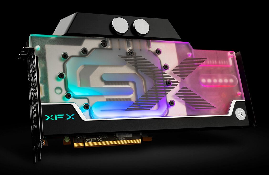 Der Wasserkühlungsspezialist EK hat sich mit dem Grafikkarten-Hersteller XFX zusammengetan, um eine werkseitig wassergekühlte Radeon RX 6900 XT-GPU vorzustellen. Die XFX Speedster ZERO Radeon RX 6900XT RGB EKWB ist mit einer 14-Phasen-VRM-Spannungsversorgung ausgestattet, welche aus DrMOS- und Hochpolymer-Kondensatoren besteht. Diese sollen sicherzustellen, dass maximale Taktraten erreicht werden können. Um die Grafikkarte dabei in einem wohl temperierten Zustand zu halten, ist ein einzigartiger EK-Wasserblock vorinstalliert. Dadurch wird sichergestellt, dass keine kostbare Zeit für die Montage vergeudet wird und es keine Fragen bezüglich der Garantie gibt.