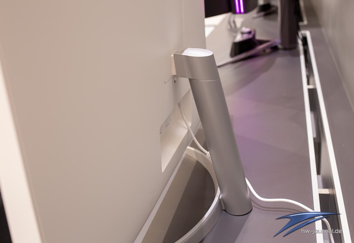 Der große Benefit soll sich unter anderem mit dem Betriebssystem einstellen, welches hier installiert wurde. Denn dabei handelt es sich um die komplette Version wir zum einen aus dem Beamer-Segment von LG, sowie auch aus der TV-Sparte kennen. Selbstverständlich stehen die umfangreichen Funktionen zur Verfügung. In welcher Weise jetzt ggf. „Einschnitte“ zu verzeichnen sind, konnte im Rahmen der Messe bisher nicht geklärt werden. Das Gerät selbst ist wohnraumtauglich gestaltet und mit weißen Applikationen versehen worden. Als Standfuß kommt eine geschwungene Version mit silberner Ausführung zum Einsatz.