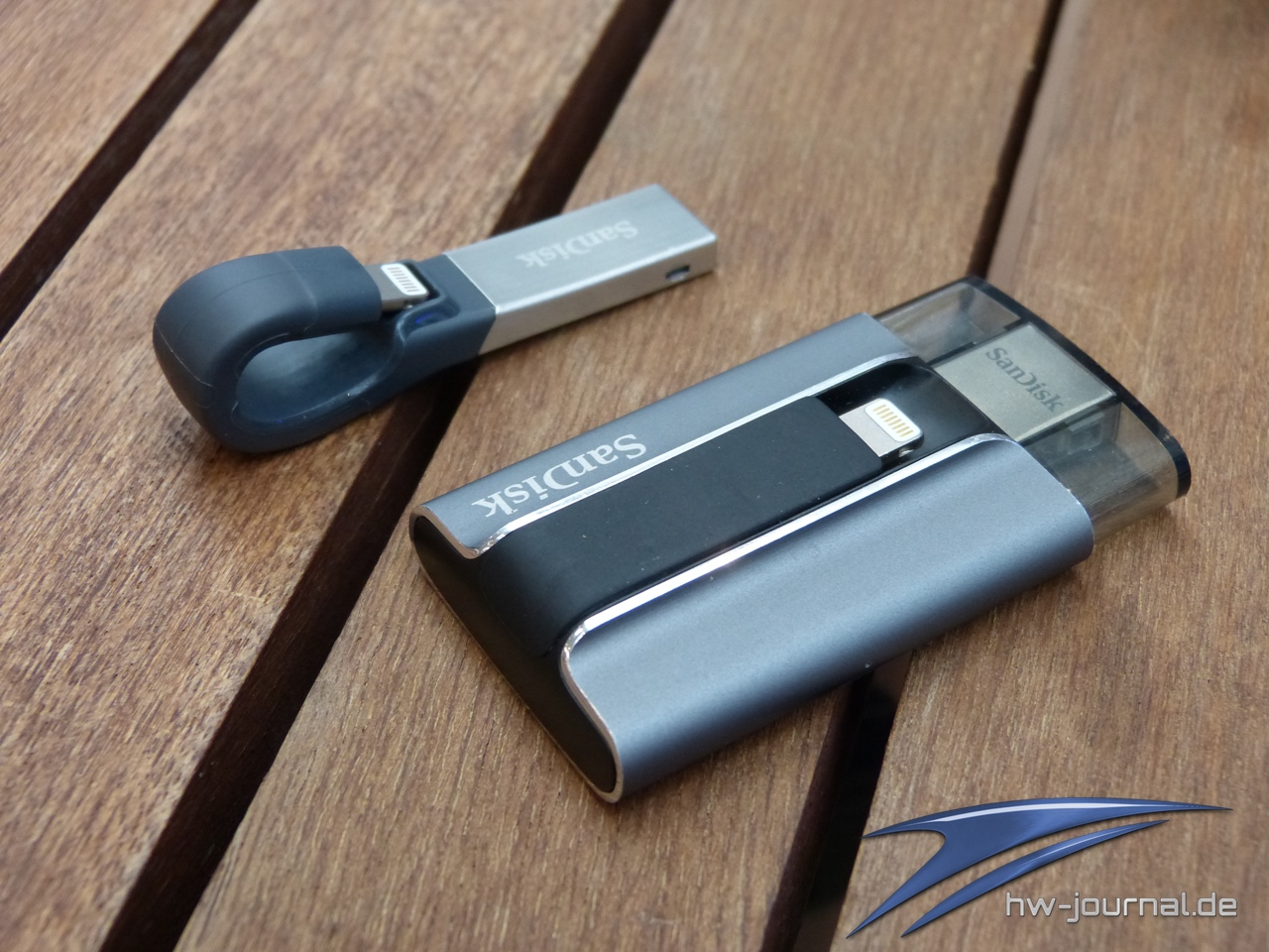 SanDisk bietet mit dem iXpand eine Möglichkeit an, den Speicher eines Apple-Geräts wie beispielsweise einem iPhone oder einem iPad zu erweitern. Das Flash-Laufwerk besitzt neben einem üblichen USB-Port auf der anderen Seite noch einen Lightning-Anschluss. Mit einer Kapazität von bis zu 128 GB kann man so einiges an Daten mitnehmen.