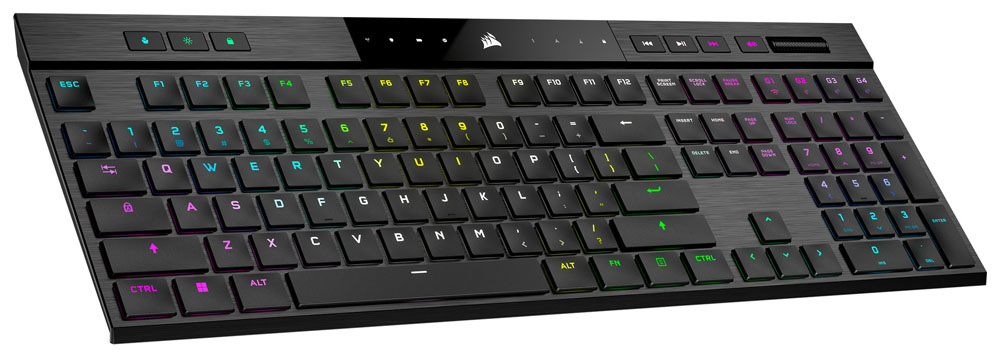 Die neu vorsgestellte Corsair K100 Air Wireless möchte mit einem außergewöhnlich flachen Gehäuse, das an seinem flachsten Punkt nur eine Höhe von 11 mm aufweist, punkten.Für die Eingabe ist die flasche Gaming-Tastatur mit reaktionsschnellen mechanischen CHERRY MX Ultra Low Profile Switches ausgestattet, welche zuverlässige taktile Tastenanschläge ohne vollständige Tastenschalter-Standardhöhe ermöglichen sollen.