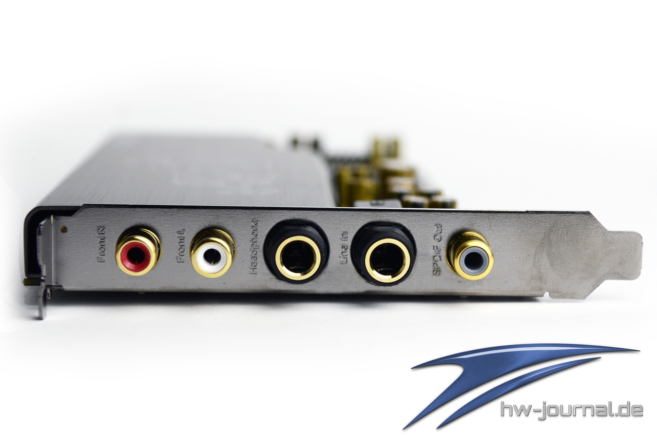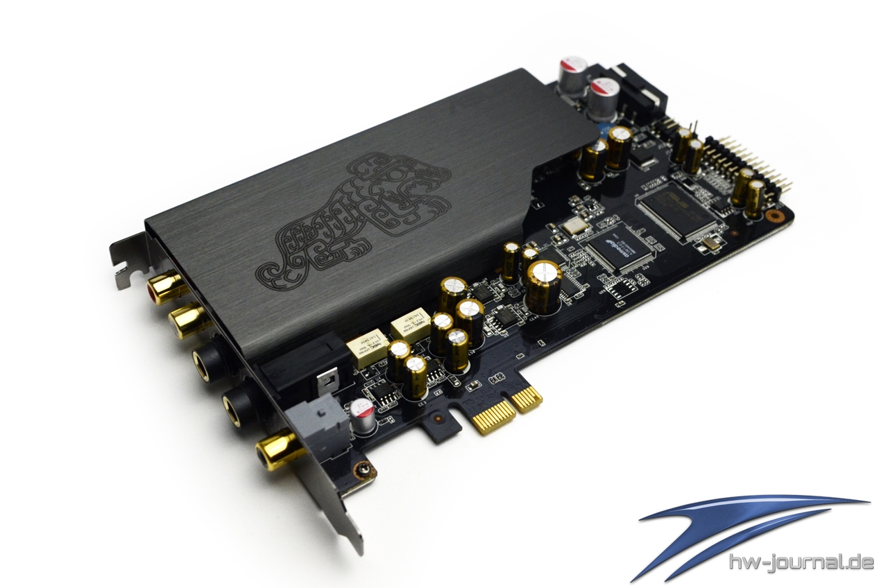 Die Essence STX II macht zwar auch optisch einen schicken Eindruck, wichtiger ist uns jedoch was in ihr steckt. Eingebaut wird die Karte auf einem PCI-Express-Slot und über einen Molexanschluss mit dem Strom versorgt. Die analogen Ausgänge werden durch eine Metallabdeckung magnetisch abgeschirmt und umfassen den Cinchanschluss als auch den 6,3mm-Klinke Kopfhörerausgang. Von der Abschirmung ausgegrenzt wurde der 6,3mm Klinke Line-In Anschluss sowie der für SPDIF/Toslink.
