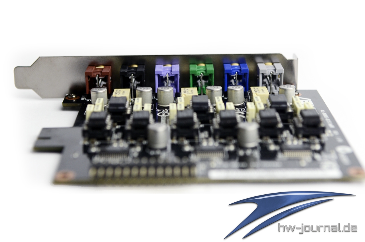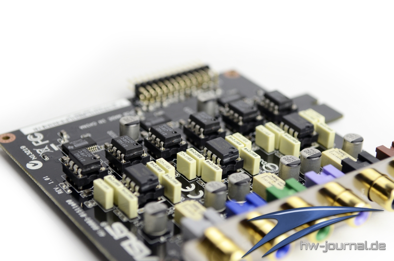 Das Tocherboard wird in einem weiteren PCI-Express-Slot eingesteckt und mit dem Hauptboard verbunden. Sie hat ebenfalls einen Signalrauschabstand von wirklich guten 120dB und erlaubt dem Nutzer die neun verbauten Operationsverstärker einzeln auszutauschen, um den Sound individuell auf die jeweiligen Bedürfnisse anzupassen.