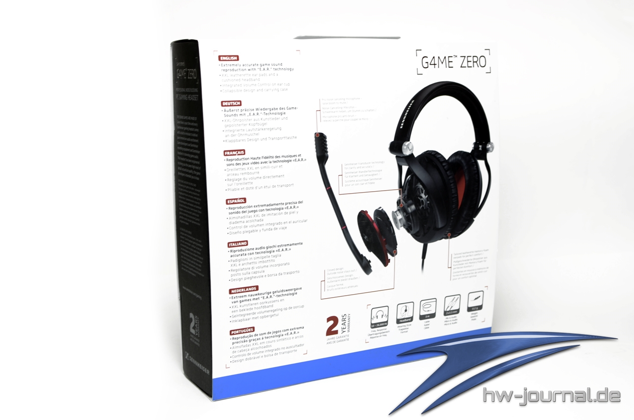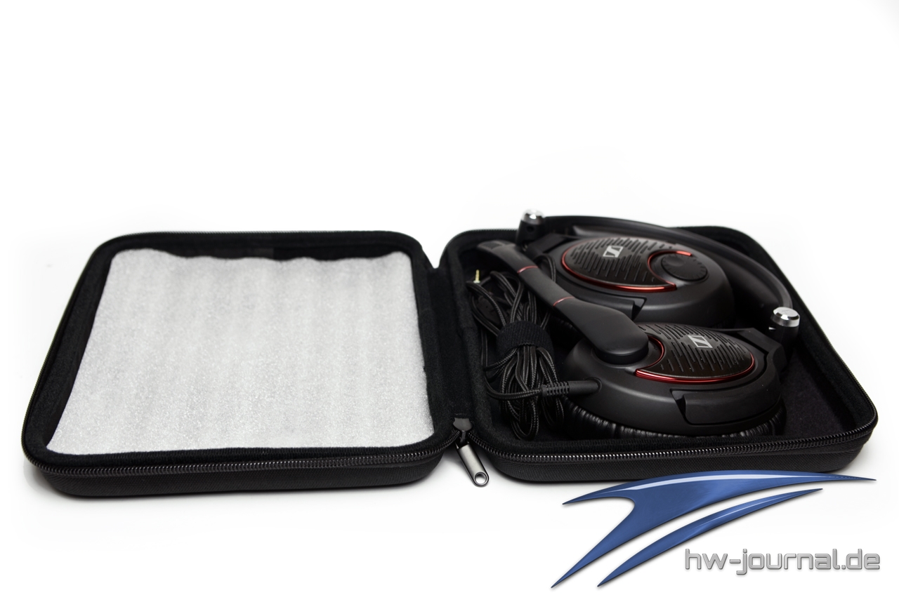 Das Sennheiser G4me Zero kommt in einem schlichten Karton, welcher ein Abbild des Headsets sowie genauere Informationen zum Funktionsumfang bietet. Für einen Preis von immer noch knapp 187 EUR (Stand: November 2014) erwartet man einen entsprechenden Lieferumfang, Sennheiser bietet hier lediglich eine stabile Transporttasche um das Headset sicher zu transportieren .