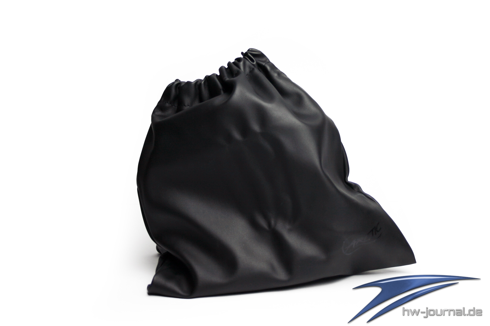 Der Lieferumfang fällt recht mager aus und umfasst das Mikro-USB auf USB-Ladekabel sowie eine Transporttasche aus Gummiartigen Stoff, in dem das Headset sicher verstaut werden kann.