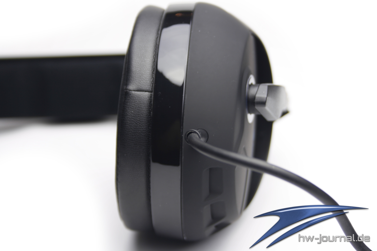 Das XTD 5.1 analog ist aus Schwarzen Kunststoff gefertigt der an den matten Hörern durch das Roccat Kave XTD Logo verziert wird, welches einen kleinen farblichen Akzent in Blau setzt. Die großen Ohrmuscheln wurden mit einer dicken Schaumstoffpolsterung im Kunstlederüberzug ausgestattet und bieten zusammen mit der stoffüberzogenen Drei-Kammer-Schaumstoffpolsterung des Kopfbügels, einen angenehmen Tragekomfort ohne ein Druckgefühl zu erzeugen.