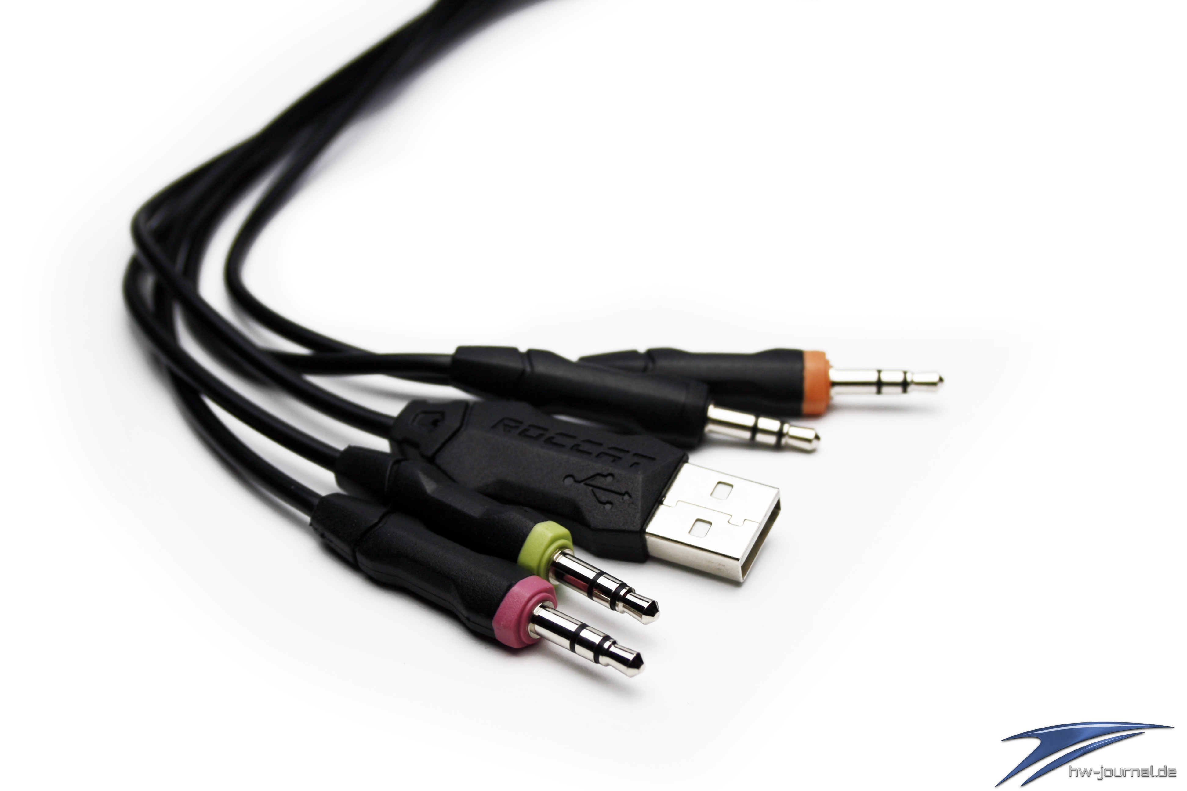Am drei Meter langen Verbindungskabel wurde vom Hersteller eine Steuereinheit angebracht, die mit einem mitgelieferten Standfuß auf jedem Tisch praktisch platziert oder an die Kleidung geclipped werden kann. Verbunden wird das Headset über die vier 3,5mm-Klinkenstecker sowie einen USB-Stecker zur Stromversorgung. Eine 5.1 Soundkarte ist also Voraussetzung um das Headset in Betrieb zu nehmen.