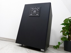 Den „CM 2014 SW“ getauften Aktiv-Subwoofer haben wir ja schon einleitend thematisiert, dass er neue Maßstäbe setzt, und dies gleich in vielerlei Hinsicht. Ob nun die 27 Kilogramm Nettogewicht, das stilsichere Design oder der massive Funktionsumfang, alles zusammen findet sich im Subwoofer von Teufels Concept E450. Neu beim E450 in der 2015er Ausführung ist, dass jetzt ein Verstärker direkt mit im Sub-Chassis verbaut wurde. Der 62 Zentimeter !!! hohe Klotz ist laut Hersteller genormt und passt unter jedem Schreibtisch. Referenz bildeten dazu die Modelle von einem bekannten schwedischen Möbelhaus. An der Front befindet sich das Touch-Panel, welches wie schon der Name suggeriert, über Berührung gesteuert werden kann. Zusätzlich kann der Control-Puk mit eingesetzt werden. Eine weiße Beleuchtung sorgt für entsprechendes Ambiente. Mehr aber im Praxistest.