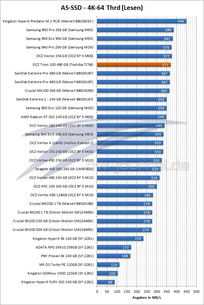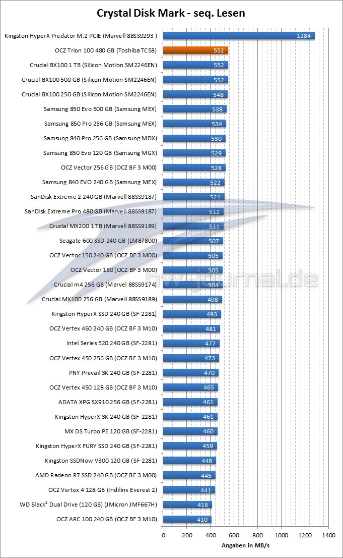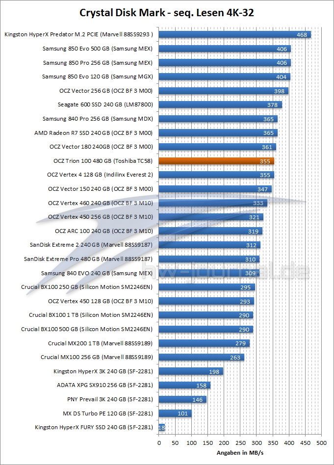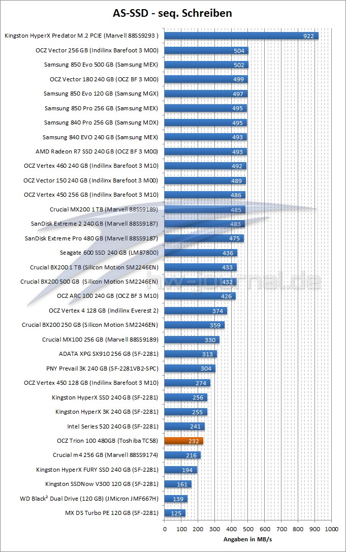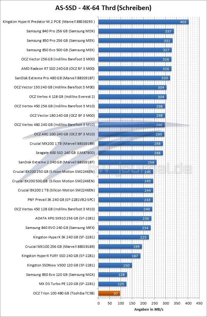 Bezeichnung | OCZ Trion 100 | Crucial BX100 | Samsung 850 EVO | OCZ Vector 180 | SanDisk Extreme Pro | Samsung 850 Pro |