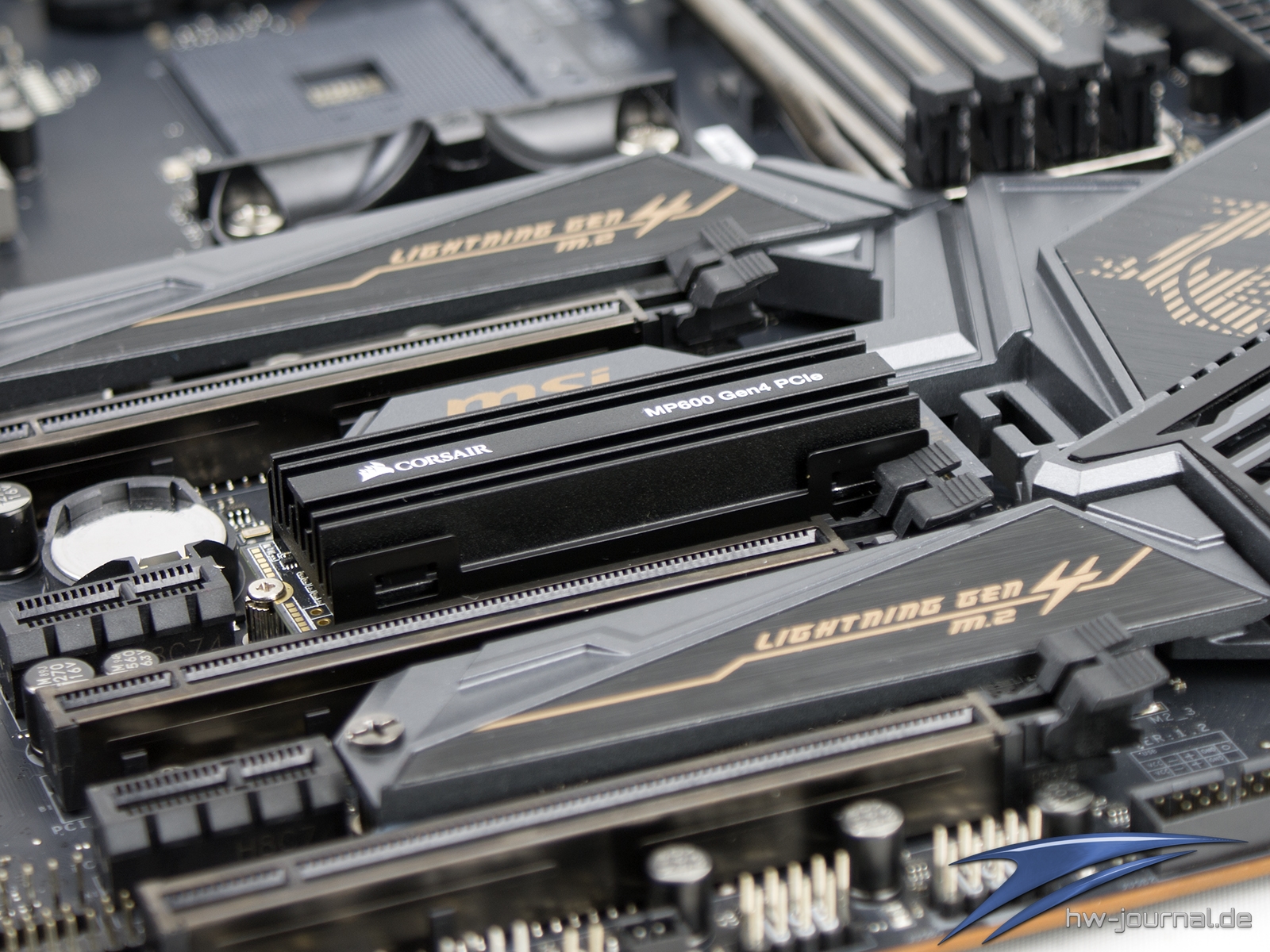 Die MP600 wurde auf dem MSI Board mit eigenem Kühler betrieben, was hier möglich ist. Sollte man eine Platine mit kompletten M.2-Schild nutzen wolen, muss man den Kühler, wie auf der Seite zuvor gezeigt, entfernen. Somit konnte auch die Temperatur bewertet werden. Alle Lüfter wurden im NZXT H710 mit ~800U/min Umdrehungen betrieben und der Chipsatzlküfter im Silent-Modus. Selbst unter Vollast über längeren Zeitraum wollte die SSD hier die 60 Grad-Grenze nicht knacken. Der Kühler scheint seiner Bezeichnung also gerecht zu werden.
