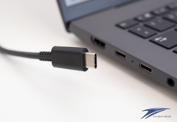 Zum Lieferumfang gehört neben dem Notebook selbst, noch das Netzteil welches mit einem Schuko-Aufsatz versehen wurde. Die Power-Delivery, wie es zu Neudeutsch immer mehr heißt, wird mittels USB-C-Stecker realisiert. Der kleine Stromadapter ist wirklich kompakt gehalten und stellt keinen Vergleich mehr zu alten klobigen Netzteilen dar.