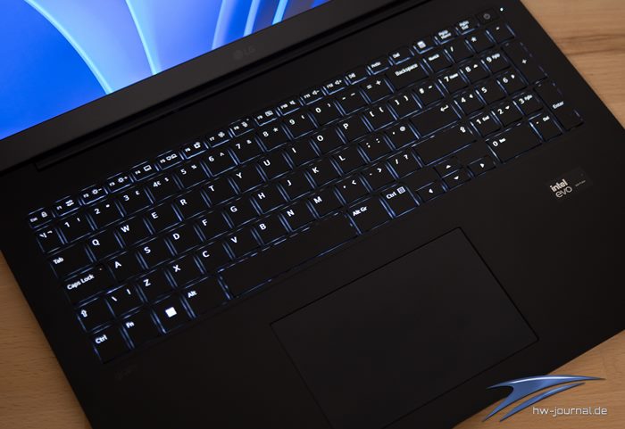 Beleuchtete Tastatur im LG gram 17Z90SP - kann gedimmt oder komplett abgeschaltet werden