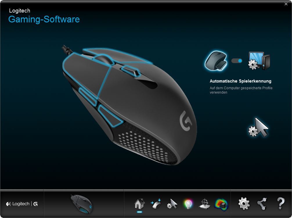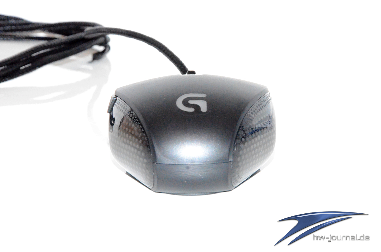 Auf der Unterseite wurden sechs Gleitpads angebracht, die für eine reibungsfreie Fortbewegung sorgen sollen. Der optische Sensor ist exakt mittig platziert. Die RGB Beleuchtung erstrahlt aus einem leicht bienenwabenförmigen Muster heraus. Gesteuert wird sie über die Logitech Gaming Sofware, die man bei herunterladen muss. Anschließend stehen dem Nutzer laut Hersteller bis zu 16,8 Millionen Farben zur Verfügung.