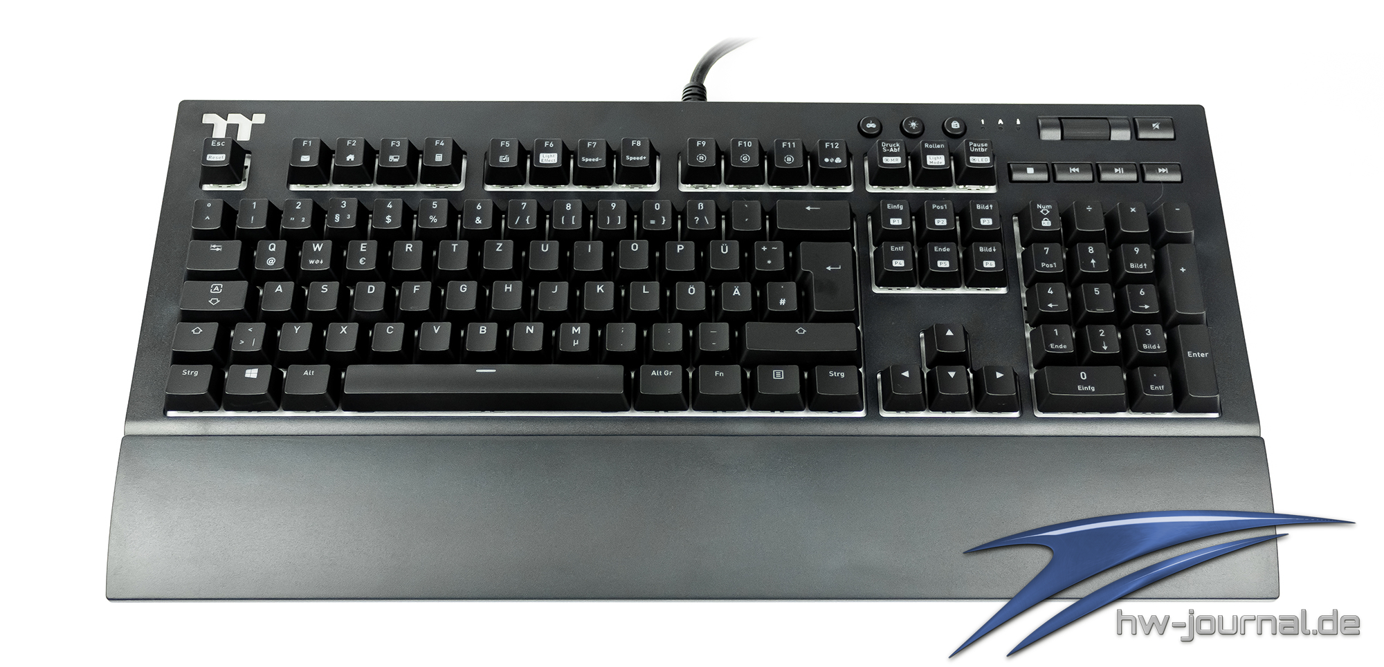 Die ausklapparen Füße tragen zur Ergonomie der Tastatur bei. Mithilfe der optionalen, aber mitgelieferten Handballanauflage kann sie allerdings noch verbessert werden. Diese kann dank des magnetischen Montagemechanismus, schnell an- und abgebaut werden. So rundet sie nicht nur die Ergonomie, sondern auch das Gesamtbild der TT X1 RGB ab.