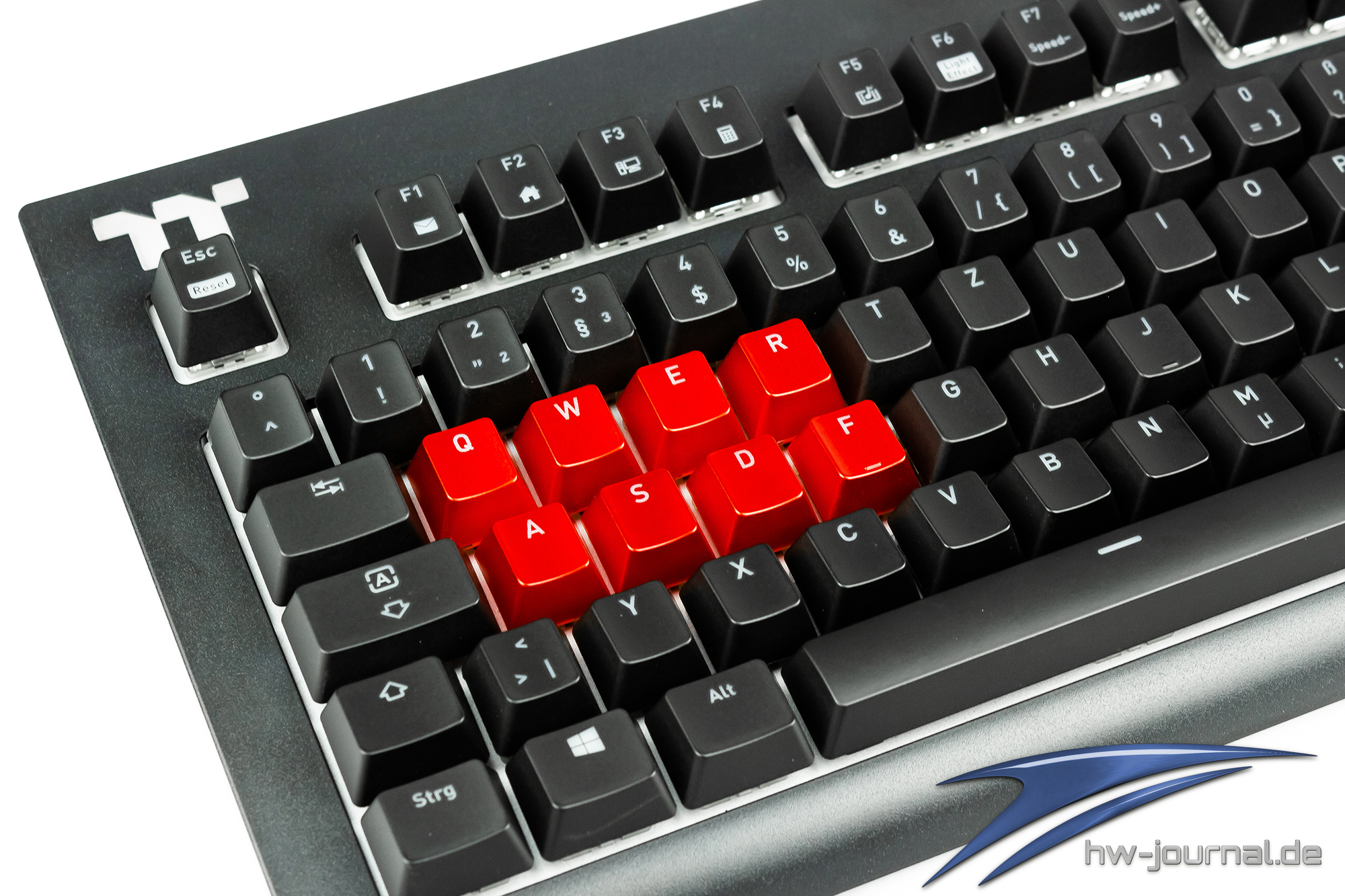 Die verbesserte Ergonomie macht sich auch in Spielen bemerkbar. Auch hier bleibt das taktile Feedback Geschmackssache. Wer gerne mit seinen Freunden oder Teammitgliedern auf Teamspeak oder Discord kommuniziert, sollte sich auch über die Lautstärke der Switche im Klaren sein. Je nach Mikrofonempfindlichkeit ist diese nicht zu verachten. Wem die Tastenkappen über den Switchen nicht gefallen, der hat dank des umfangreichen Zubehörs die Möglichkeit die Q, W, E, R, A, S, D, F Tasten, mit Alternativen, roten Tasten zu ersetzen. Diese sind in der Textur nur minimal anders als die herkömmlichen, sodass sie sich im Einsatz nicht anders anfühlen. Wem dieser Look gefällt kann sich über die Dreingabe freuen.
