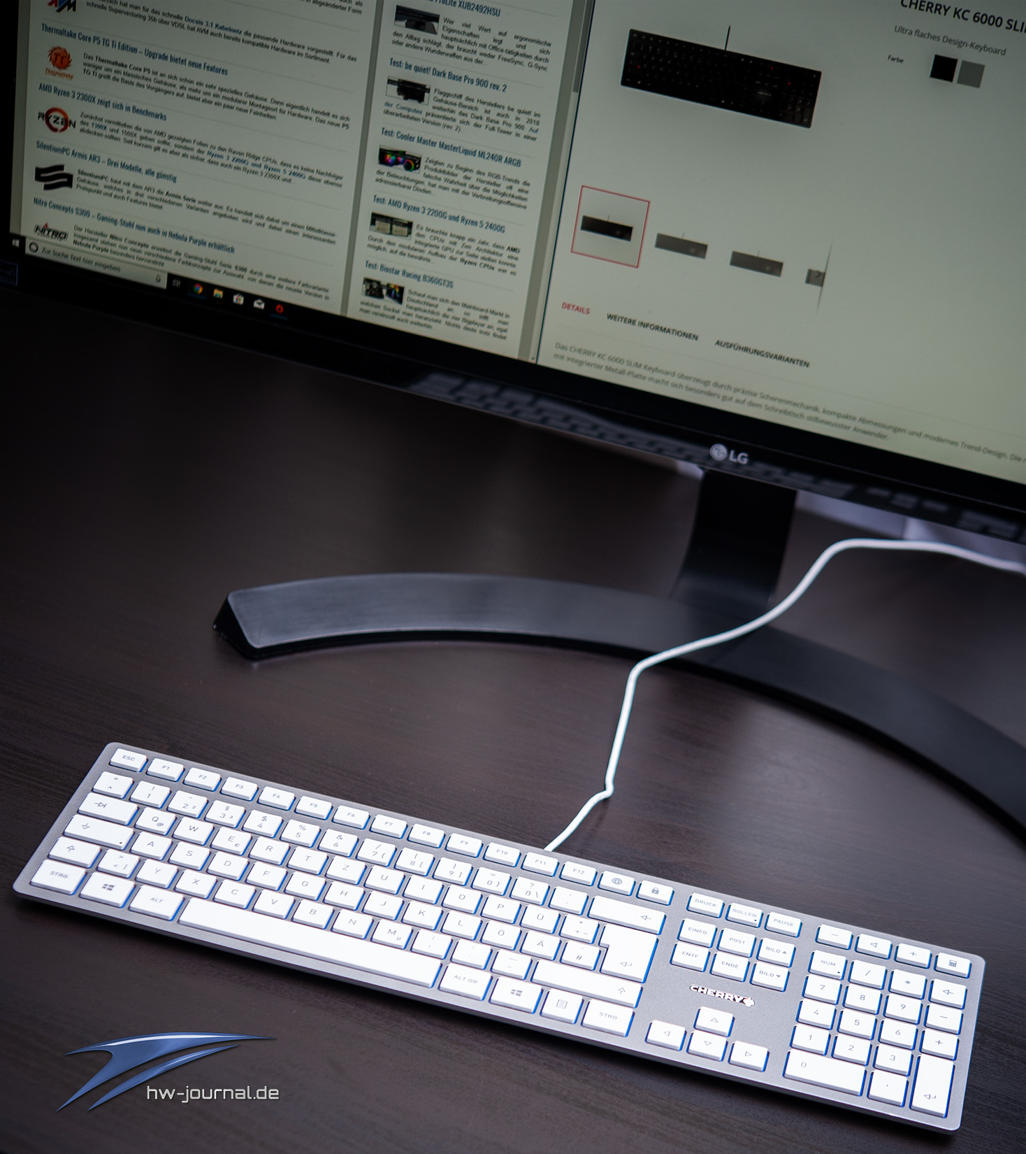 Für den Praxistest nutzen wir die Cherry KC 6000 Slim in den letzten zwei Wochen im Redakteursalltag und haben die Tastatur schon mit über 35.000 Wörtern „gequält“. Aber eins vorneweg, das nimmt das Eingabegerät mit einem müden Lächeln hin bzw. die Tasten und der darunterliegende Technik verhalten sich noch wie am ersten Tag.