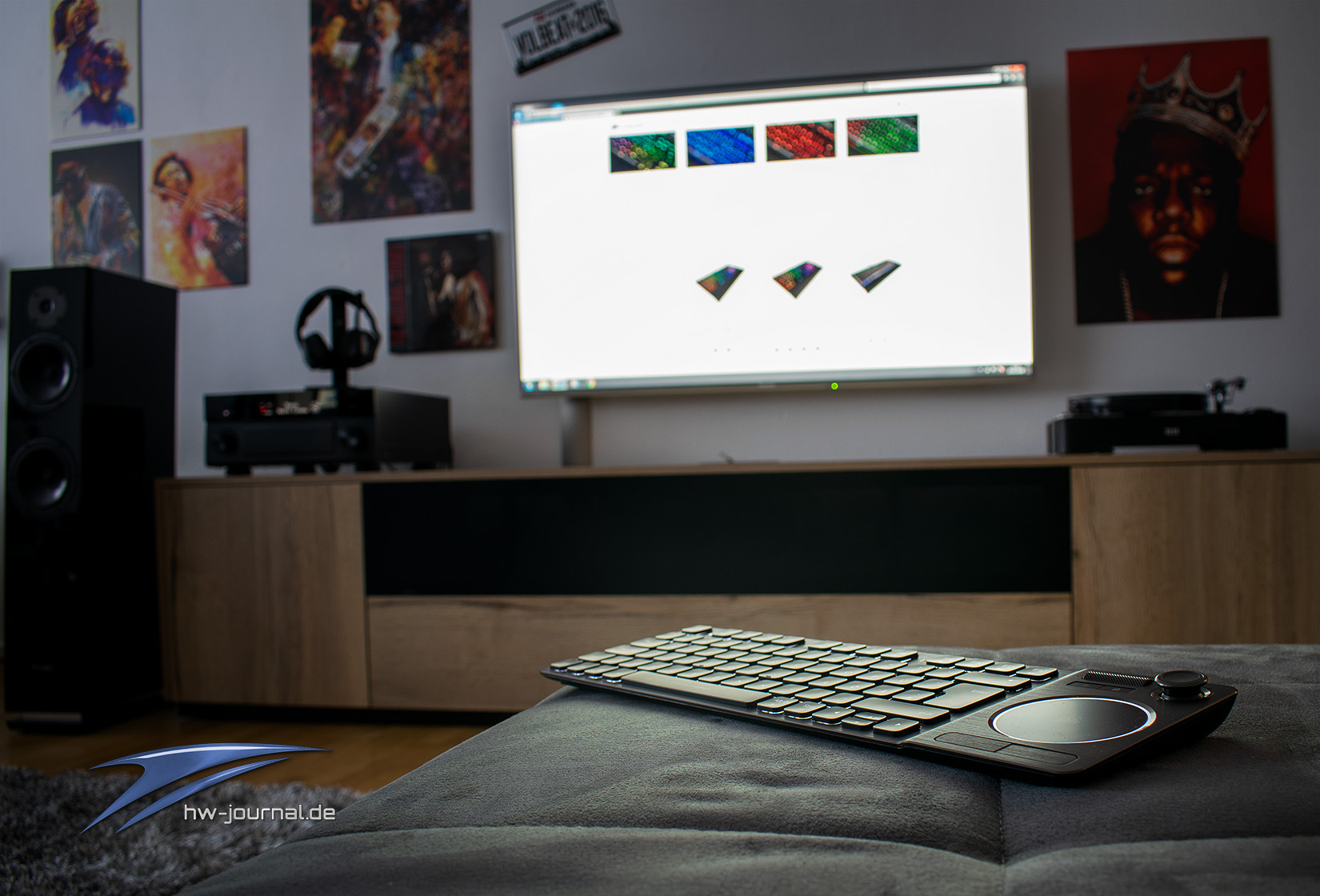 Dank der vielen Schnittstellen die man der K83 spendiert hat, ist der Einsatzzweck sehr vielseitig. Neben der PC- bzw. MAC-Nutzung über den Wireless-Dongle, womit sich die Tastatur optimal für einen HTPC eignet, kann man dank der integrierten Bluetooth-Schnittstelle auch mit Geräten wie einem Amazon Fire TV, Nvidia Shield TV, Smart TVs mit Android- bzw Fire OS oder Samsung Tvs ab dem Baujahr 2016 agieren. Welche genauen Funktionen möglich sind, lässt sich auf der Homepage von Corsair nachlesen, da sich das je nach Anwendung deutlich unterscheiden kann. Wir entschieden uns für den Einsatz an einem HTPC, da hier alle Funktionen zur Verfügung stehen und die Tastatur somit komplett beurteilt werden kann. Für den Betrieb mit einem Windows-PC wurde der 2,4GHz Wireless-Dongle genutzt, der eine gute Reichweite ermöglicht. So war der Betrieb trotz geschlossener Holzabdeckung in einer Entfernung von 4-5 Meter völlig entspannt und verzögerungsfrei möglich. Somit muss es nicht unbedingt immer Bluetooth zur verdeckten Steuerung sein.