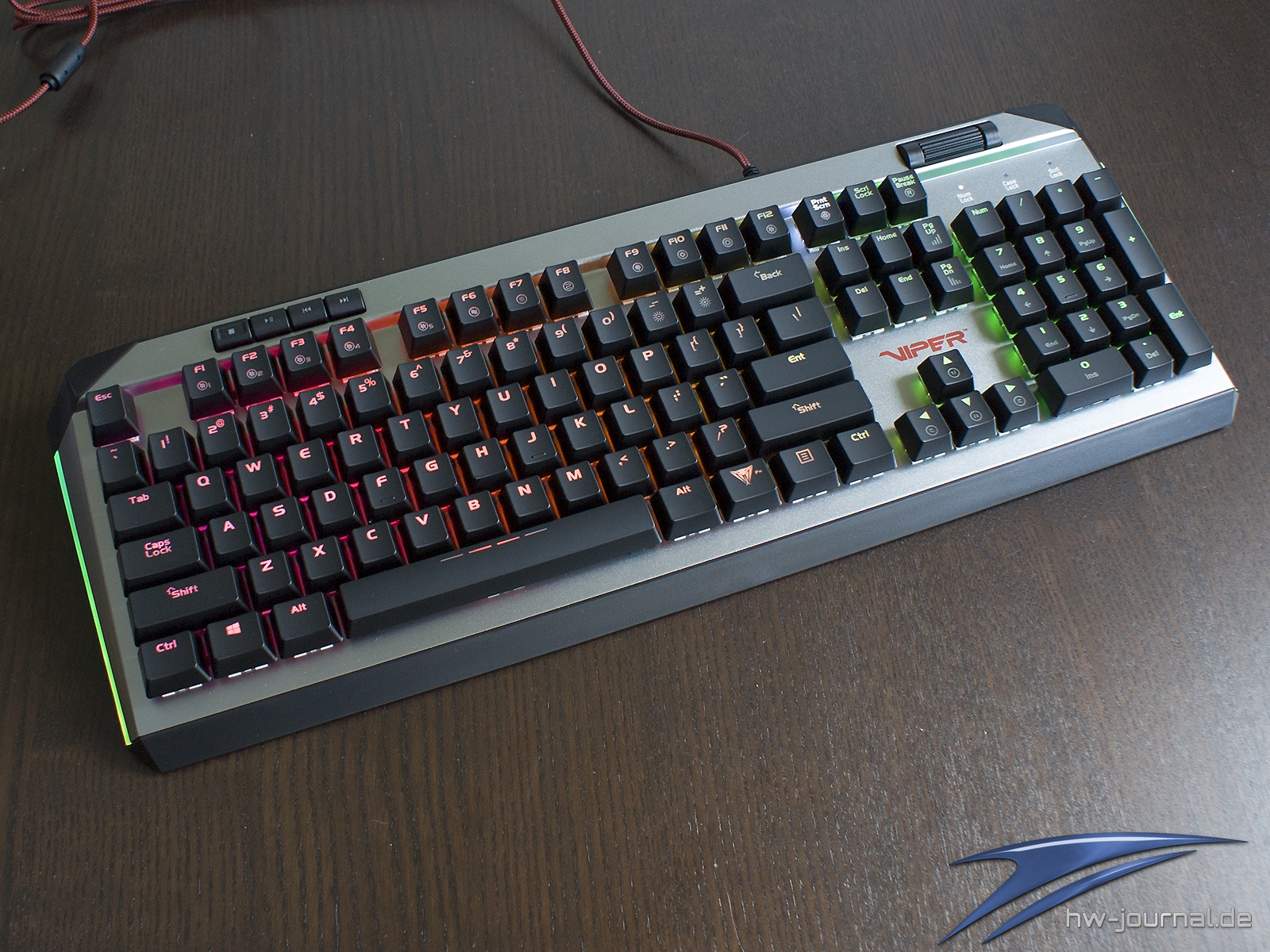 Insgesamt macht die Tastatur eigentlich eine gute Figur. Einen leicht faden Nachgeschmack hinterlässt die Materialwahl. Die Software ist an sich gut bedienbar und lässt relativ viele Optionen zu, dürfte aber etwas besser strukturiert sein. Mittlerweile ist die V765 neben dem von uns gezeigten QWERTY-Layout auch im QWERTZ-Layout erhältlich. Beim Preis schlägt sie sich passabel. Mit aktuell 87€ gibt es zwar auch viel Konkurrenz, aber überteuert ist sie nicht. Der Geschmack könnte hier das Zünglein an der Waage sein. Letztendlich kann sich die Viper V765 den Preis-Leistungs-Award sichern, da die Kritik zum Teil auch subjektiver Natur ist und sie sich in der Preislage doch etwas von der Konkurrenz abheben bzw. aus der Masse hervorheben kann. Kaufen kann man das Eingabegerät u.a. bei Amazon.