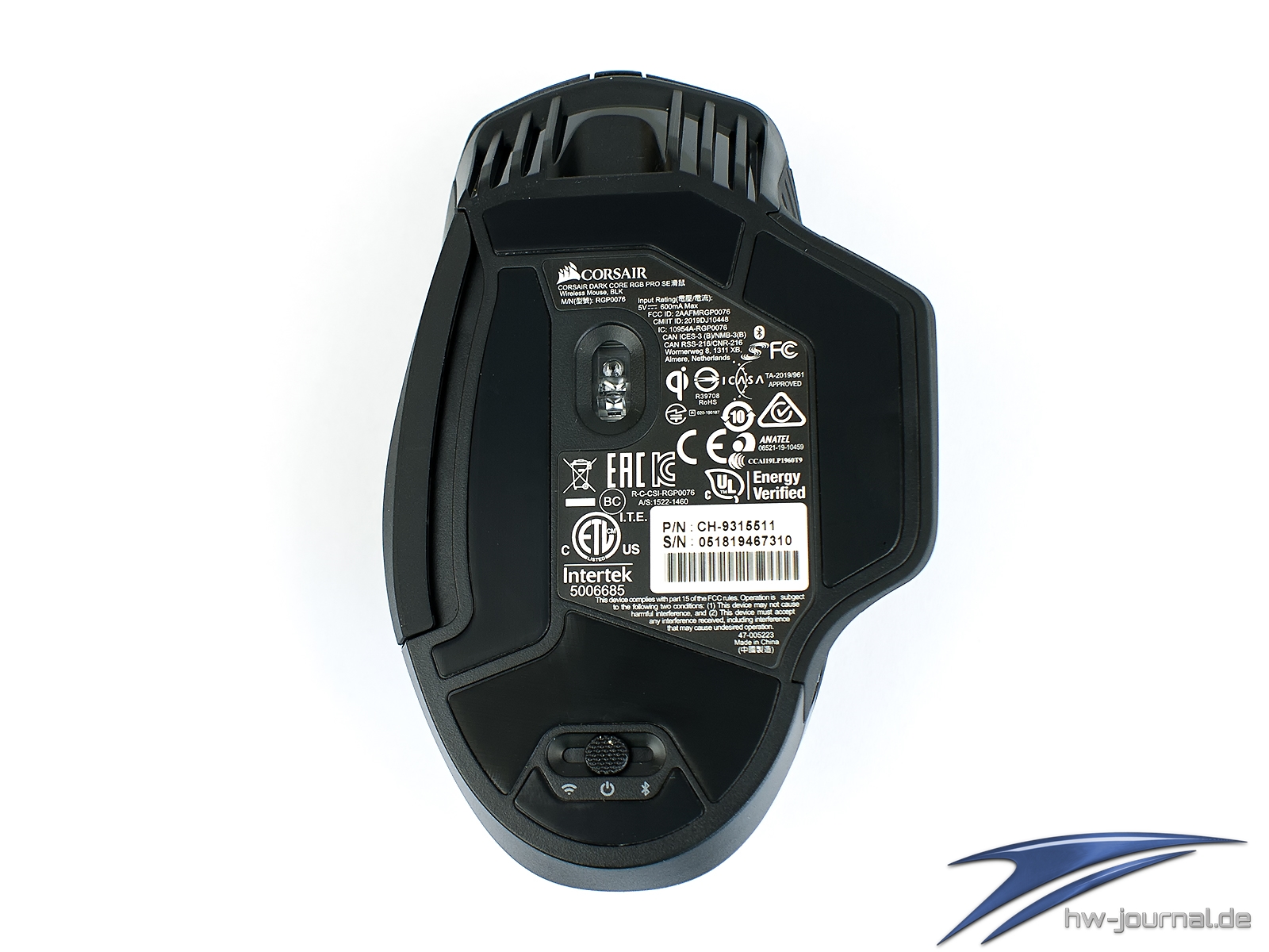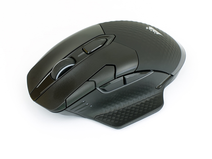 Ansonsten ist eigentlich Gehäuse-technisch alles beim Alten geblieben. Die Rückseite der Maus weist leichte Noppen und eine Soft-Touch-Oberfläche auf, was der Maus nicht nur mehr Gripp, sondern auch einen Wiedererkennungswert verpasst. Gleich geblieben ist auch, dass man die rechte Seite um einen Fingerablage ergänzen kann. Eine sehr erfreuliche Änderung findet man aber auch an der Front vor. Geladen wird nun über einen USB-C-Stecker. Alternativ kann die SE auch wieder mittels QI aufgeladen werden, was insbesondere mit dem Corsair MM1000 eine interessante Kombination ergibt.