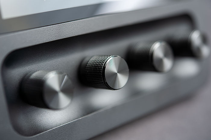 Ausgepackt unterstreicht das Deck den Premiumanspruch von Elgato schon auf den ersten Blicken. Das aus Kunststoff gefertigte Gehäuse ist mit einer schicken Oberfläche versehen und solide verarbeitet. Die acht oben integrierten Tasten kennt man schon von den anderen Streamdecks und sind frei belegbar. Darunter sitzen dann die beiden Neuheiten, denn das 108 x 14 mm große LC-Display gab es so noch bei keinem Modell, genauso wenig wie die vier darunter liegenden Drehregler mit Druckfunktion. Letztere sind sogar aus Aluminium gefertigt und bringen mit ihrer griffigen Struktur eine tolle Haptik mit.