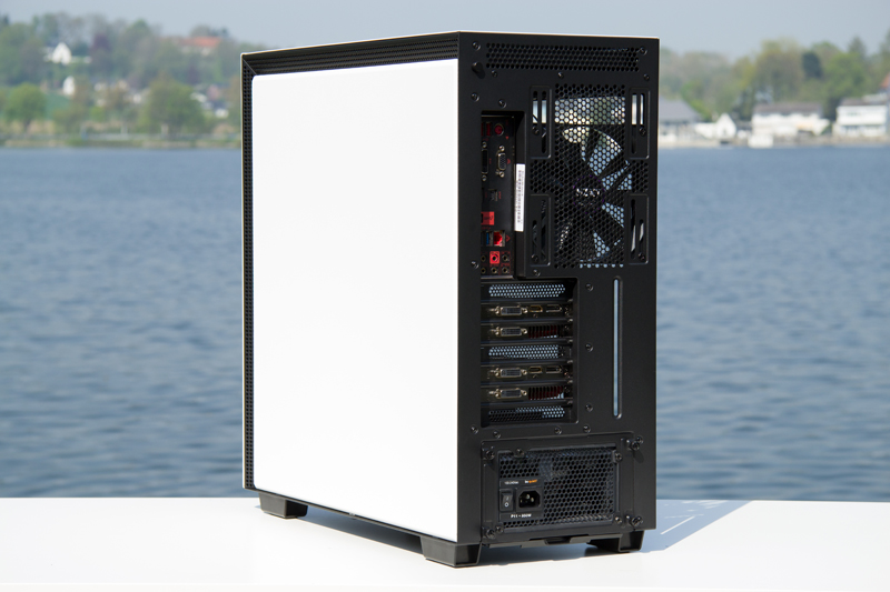 Wie üblich zieren auch hier insgesamt sieben Erweiterungsschächte die Rückseite. Obwohl das NZXT H700i insgesamt sehr schmal ausfällt kann trotzdem ein 140mm Lüfter verbaut werden. Wie gut, dass man ab Werk bereits einen mit ausliefert - mit insgesamt vier Lüftern ist der Midi-Tower also bestens vorbereitet. Drei weitere Lüfter sind in der Front vertreten und weitere drei könnten in das Top einziehen.