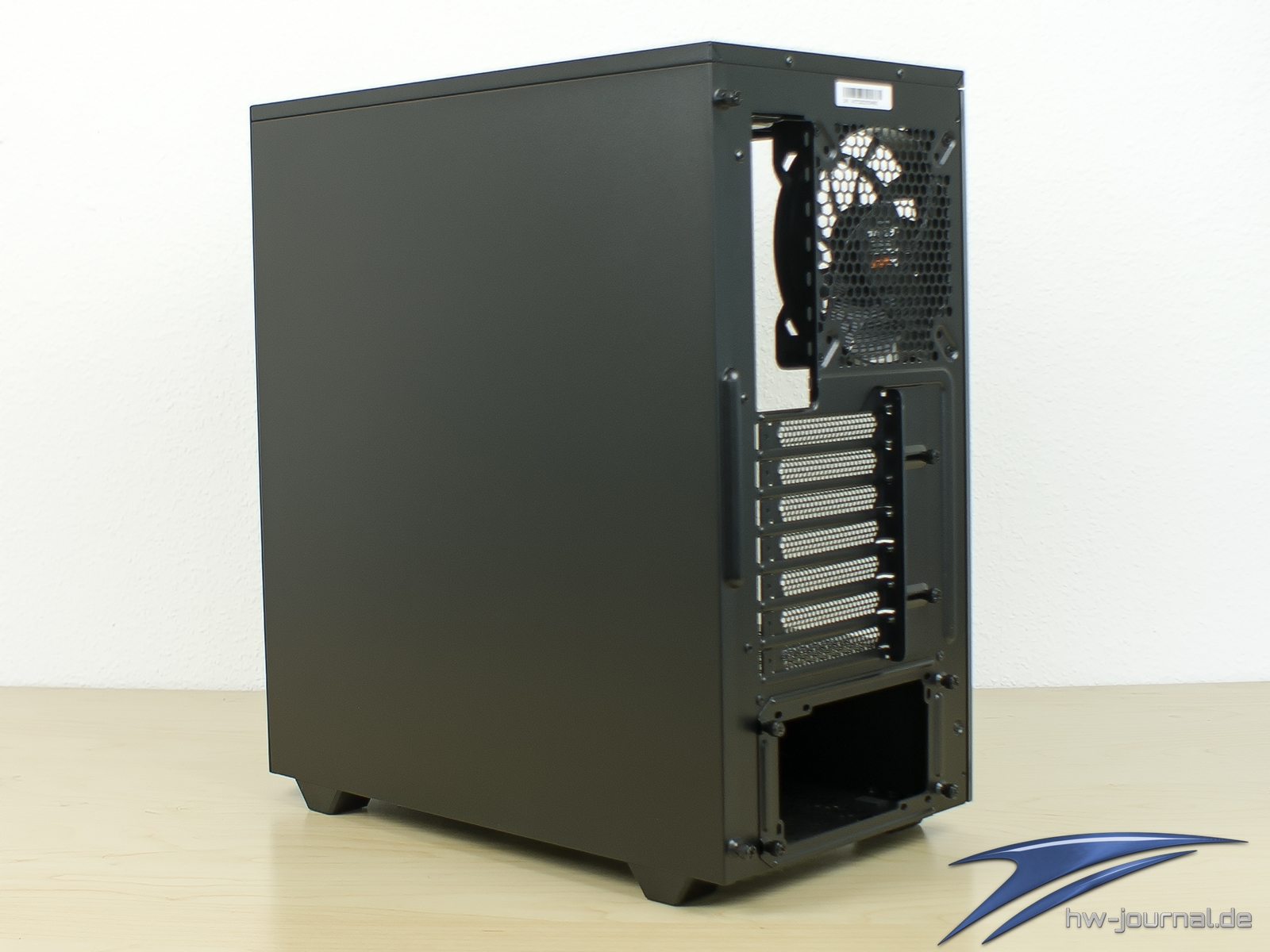 Auf der Rückseite und am zweiten Seitenteil hat sich nichts geändert. Es gibt sieben Erweiterungs-Slots, das Netzteil wird per Hilfsrahmen montiert, es ist ein 140mm Pure Wings 2 verbaut und das Seitenteil ist von innen mit einer Dämmmatte beklebt. Änderungen brauchte es hier eigentlich auch nicht.