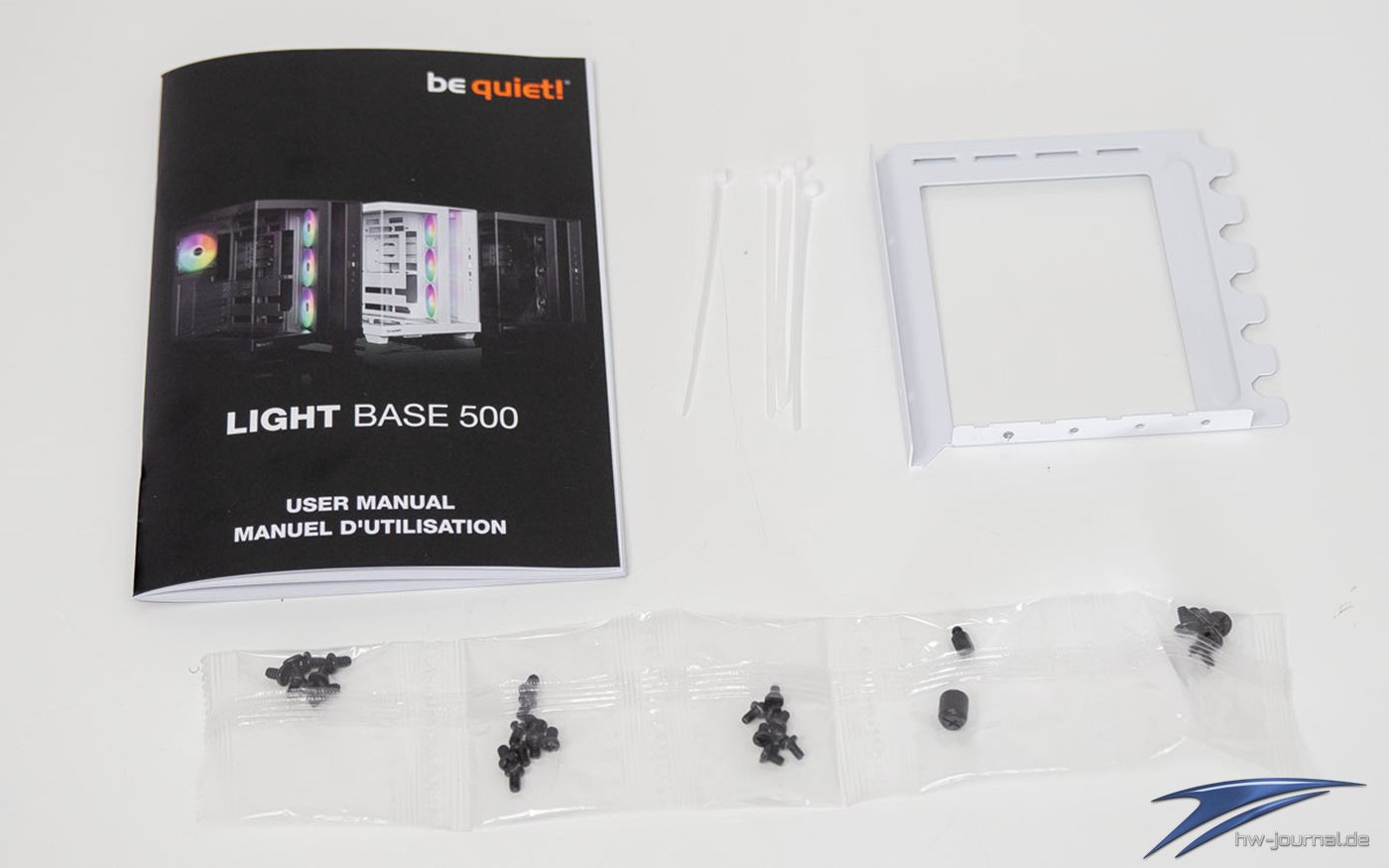 Im Lieferumfang enthalten sind eine breite Palette an Schrauben, Klettstreifen für die Montage bzw. fürs saubere Verlegen der Kabel, ein HDD-Holder und ein Airflow-Frame für den PSU-Tunnel. Man ist also bestens ausgerüstet für die Montage der eigenen Hardware.