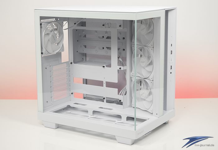 Lüfter | max. Anzahl Lüfter: 10x Heck: 1x 120 mm (1x vorinstalliert) oder 1x 140 mm Seite: 3x 120 mm (3x vorinstalliert Top: 3x 120 mm oder 2x 140 mm Boden: 3x 120 mm |