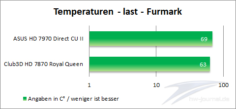 All die großen Kühler-Designs welche die Hersteller Wochen, wenn nicht gar Monate an Entwicklungszeit kosten, erfüllen aktuell auch wirklich ihren Zweck. Vor einigen Jahren dienten diese mehr als Zierde auf den PCBs. Nichtsdestotrotz wollen wir auch die Temperaturen der Chips festhalten. Um auch wirklich die Leistungsfähigkeit des jeweiligen Kühlers zu ermitteln, haben wir uns dazu entschieden, jede Grafikkarte mit dem Furmark Grafikbenchmark zu strapazieren. Dazu wird die Lüftersteuerung im Treibermenü auf auto gestellt und der maximal erreichte Werte innerhalb des Testzeitraums dokumentiert. Es sollte nochmal erwähnt werden, dass diese Methode für den Grafikchip sehr fordernd ist und nur bei ausreichender Kühlung durchgeführt werden.
