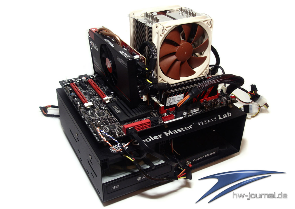 Zum Einsatz kommt unsere neu aufgestellte Grafikkarten-Testplattform, welches in Form eines offenen Aufbaus realisiert und durch die entsprechenden Grafikkarten immer ergänzt wird. Den Unterbau dafür bietet dafür das ASUS Maximus V Formular, welches von Seasonic`s X-1050 (zum HW-Journal Testbericht) mit Strom versorgt wird. Für ausreichend Puffer ist also gesorgt. Als zentrale Recheneinheit fungiert Intels Ivy-Bridge Top-Modell, der Core i7-3770K mit einem Retail-Stepping. Wir verwenden für die Tests zwei identische SSDs, welche mit exakt dem gleichen Setup bespielt wurden. Auf den SSDs befinden sich jeweils ein AMD- und einmal ein Nvidia-Treiber. So können wir die Treiber-Problematik aus dem Weg gehen, welche beim Installieren sowie Entfernen der Software mitunter entstehen kann.