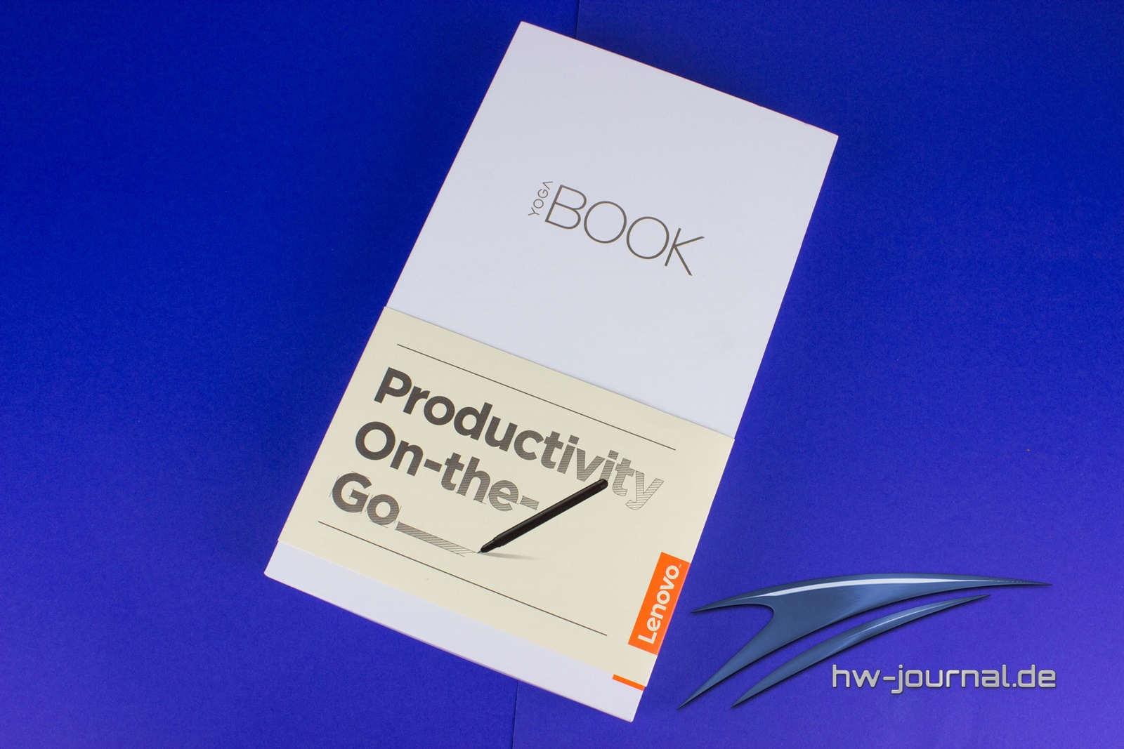 Das Tablet kommt in einer länglichen und flachen Verpackung daher, die wie ein Buch aufgemacht ist. Im Inneren finden wir neben dem Tablet noch ein Netzteil inkl. Micro-USB Ladekabel, ein Notizblock mit Stift, drei Austausch-Minen für den Stift, ein Sim-Slot-Pin sowie diverse Handbücher und Anleitungen.