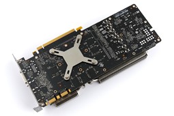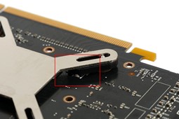 Als ersten Schritt zur Montage des Kühlers müssen Gewindestangen in die richtigen Löcher der GPU-Halterung eingedreht werden. Danach kann, nach dem Auftragen der mitgelieferten Wärmeleitpaste, die Grafikkarte auf den Kühler gelegt werden. Leider mussten wir dabei feststellen, dass an der mitgelieferten Backplatte ein Abstandshalter aus Kunststoff/Gummi mit zwei Bauteilen auf der Rückseite des Grafikbeschleunigers kollidiert. Mit einem Messer kann das Problem behoben werden und der Kühler auf der Karte montiert werden.