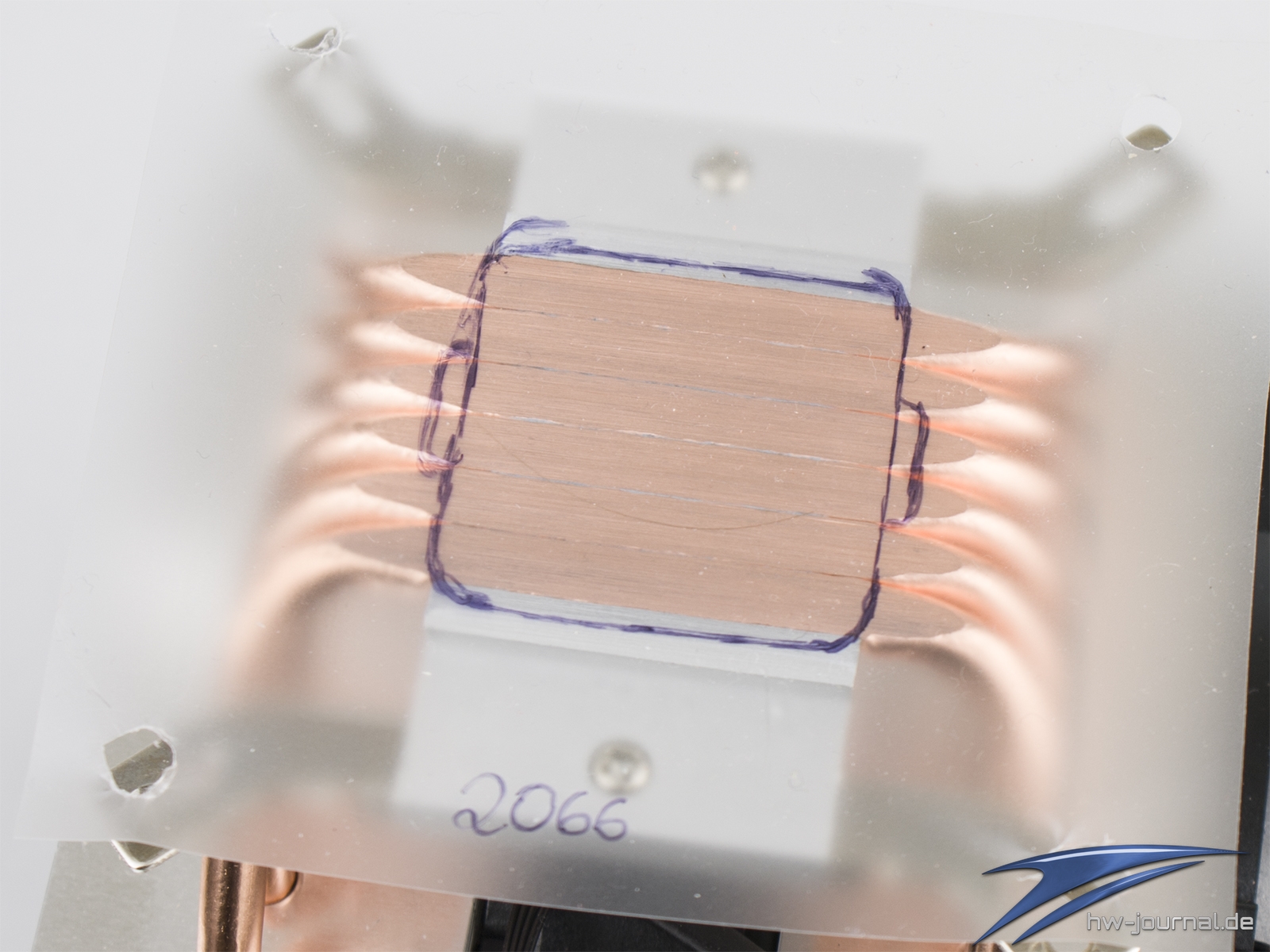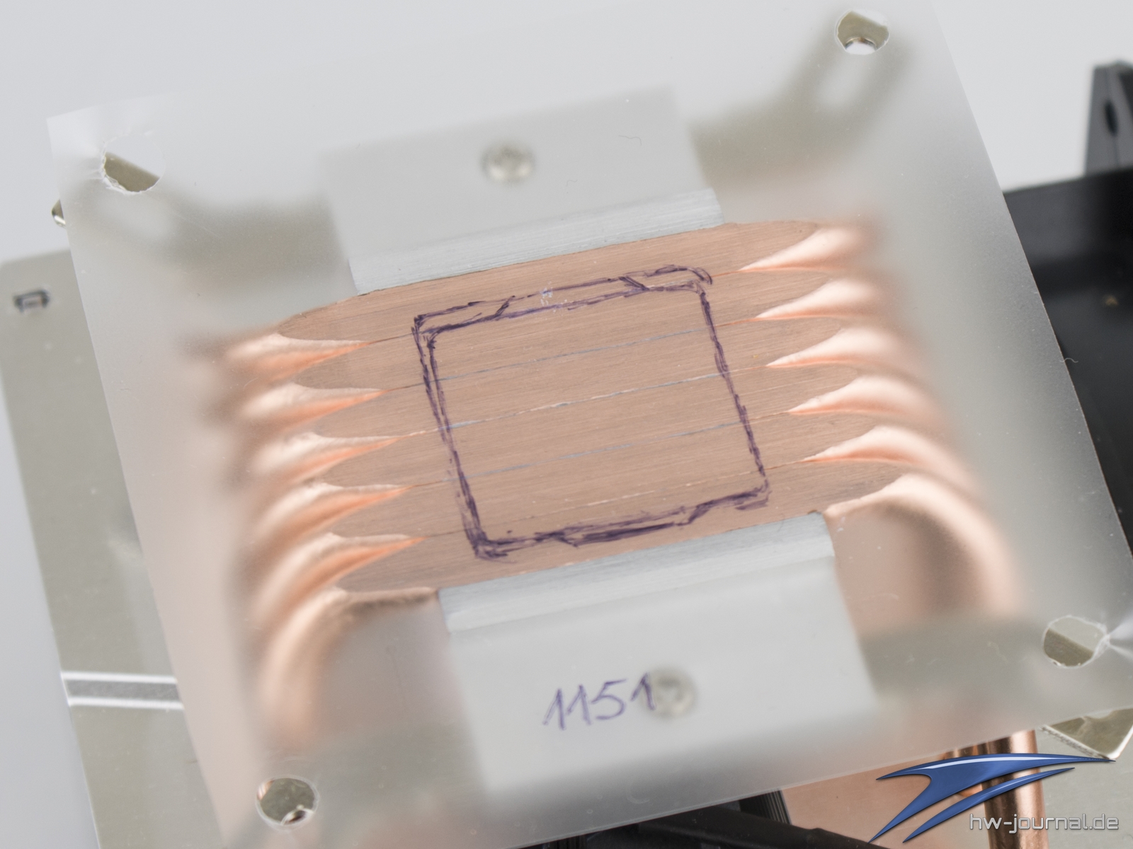 Statt den Kühler auf jedem Sockel zu montieren, nutzen wir die „Folien-Methode“, welche wir auch schon beim Threadripper-Cooler-Roundup verwendet hatten. Zeigen wollen wir hiermit, inwieweit der Boden des Kühlers die jeweiligen CPUs abdeckt.