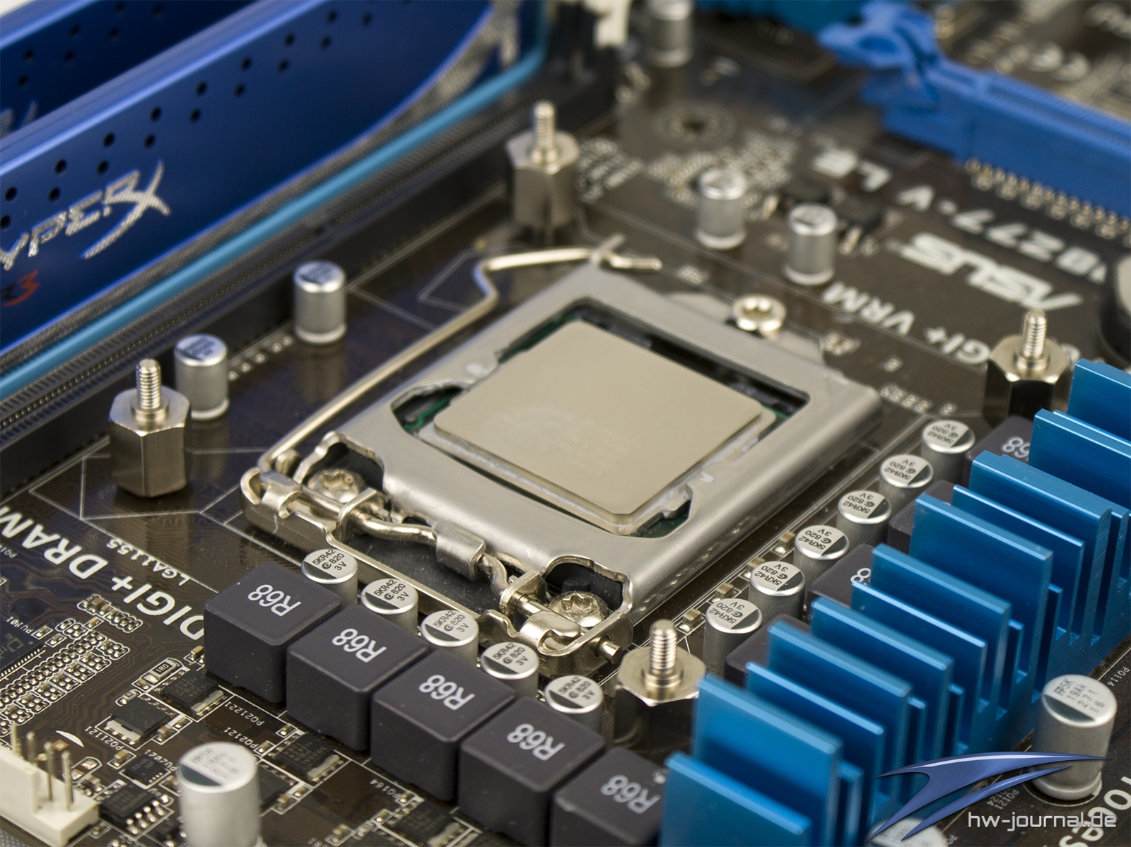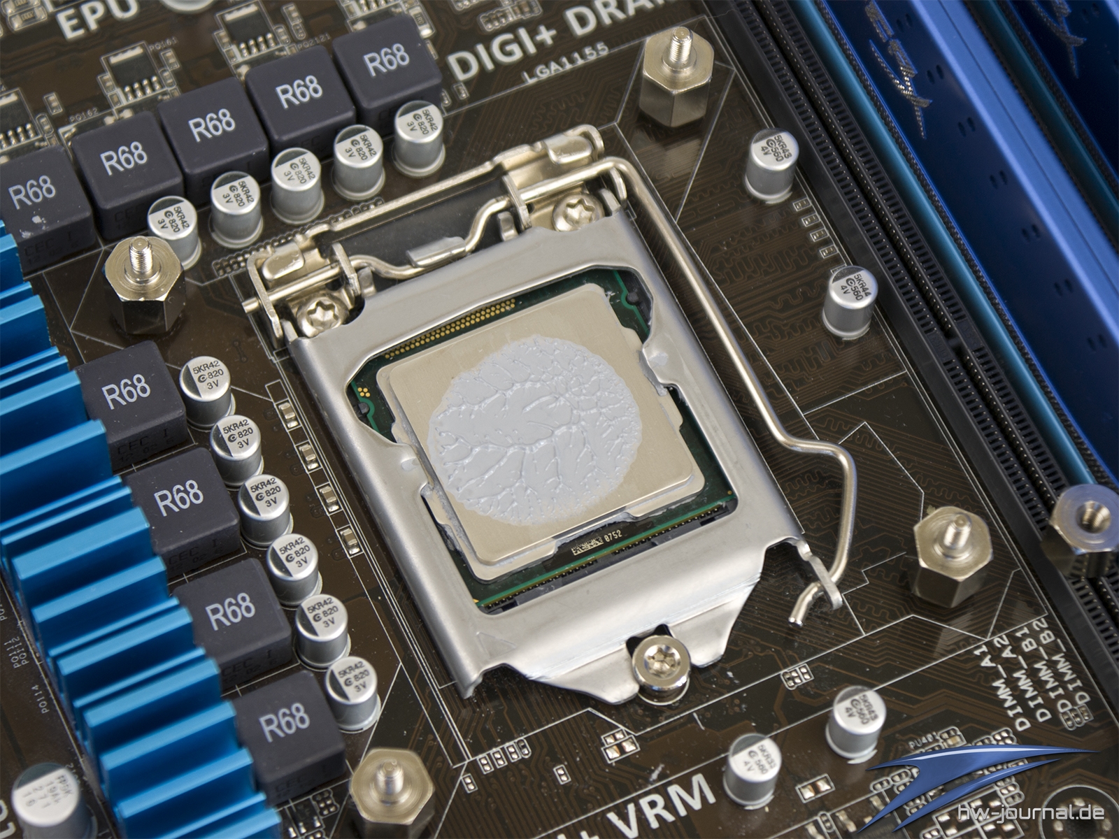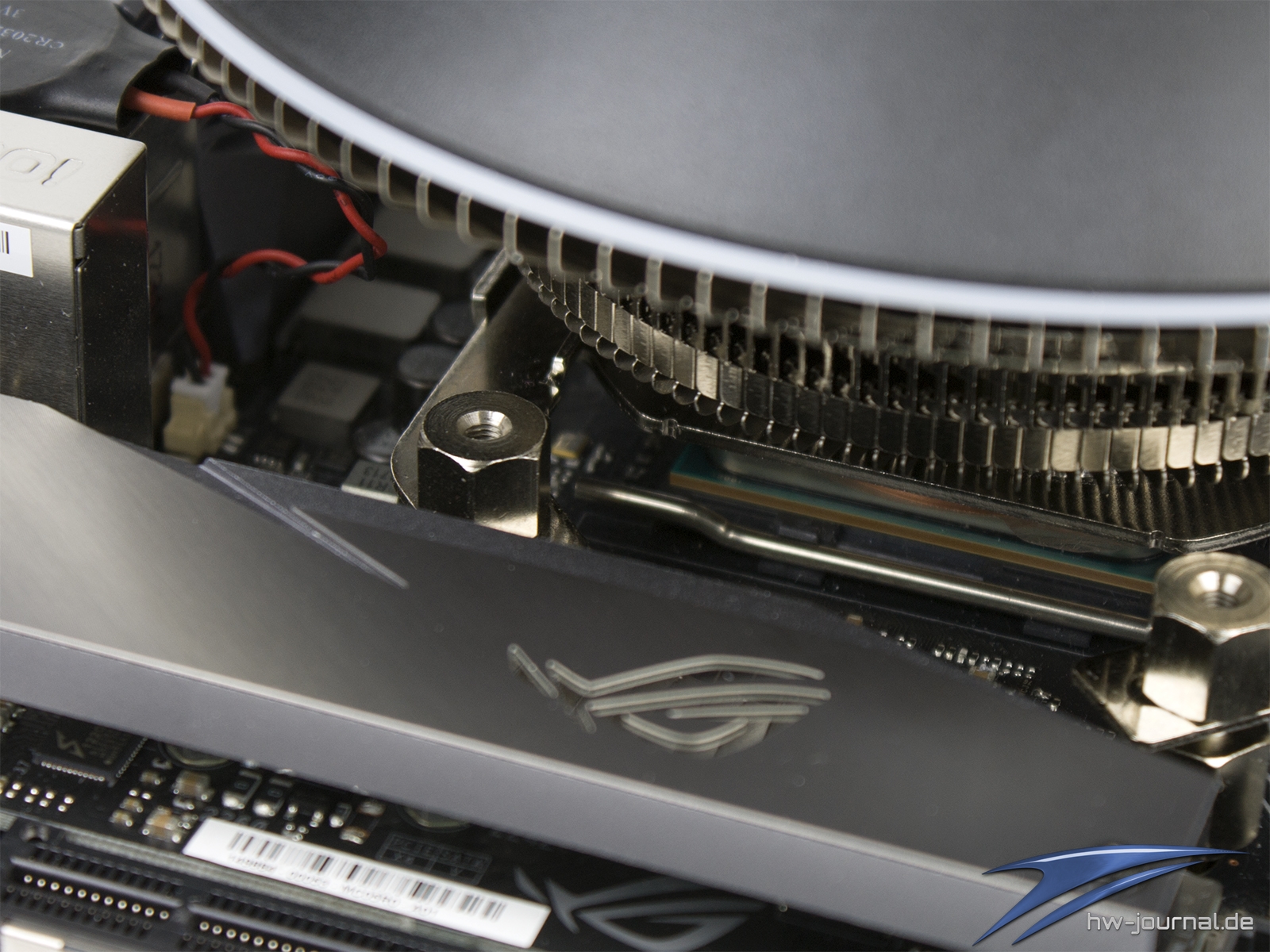 Die Freiheit unter dem Kühler sollte im Normalfall für jegliche Kühlkonstruktionen der Mainboards ausreichend sein. Lediglich beim RAM können sich wieder Engpässe ergeben. Wie man in unserem Beispiel entnehmen kann, wäre mit flachem Speicher auch Platz im ersten Slot. Mit höherem Heatspreader wird es aber auch schon im zweiten knapp.