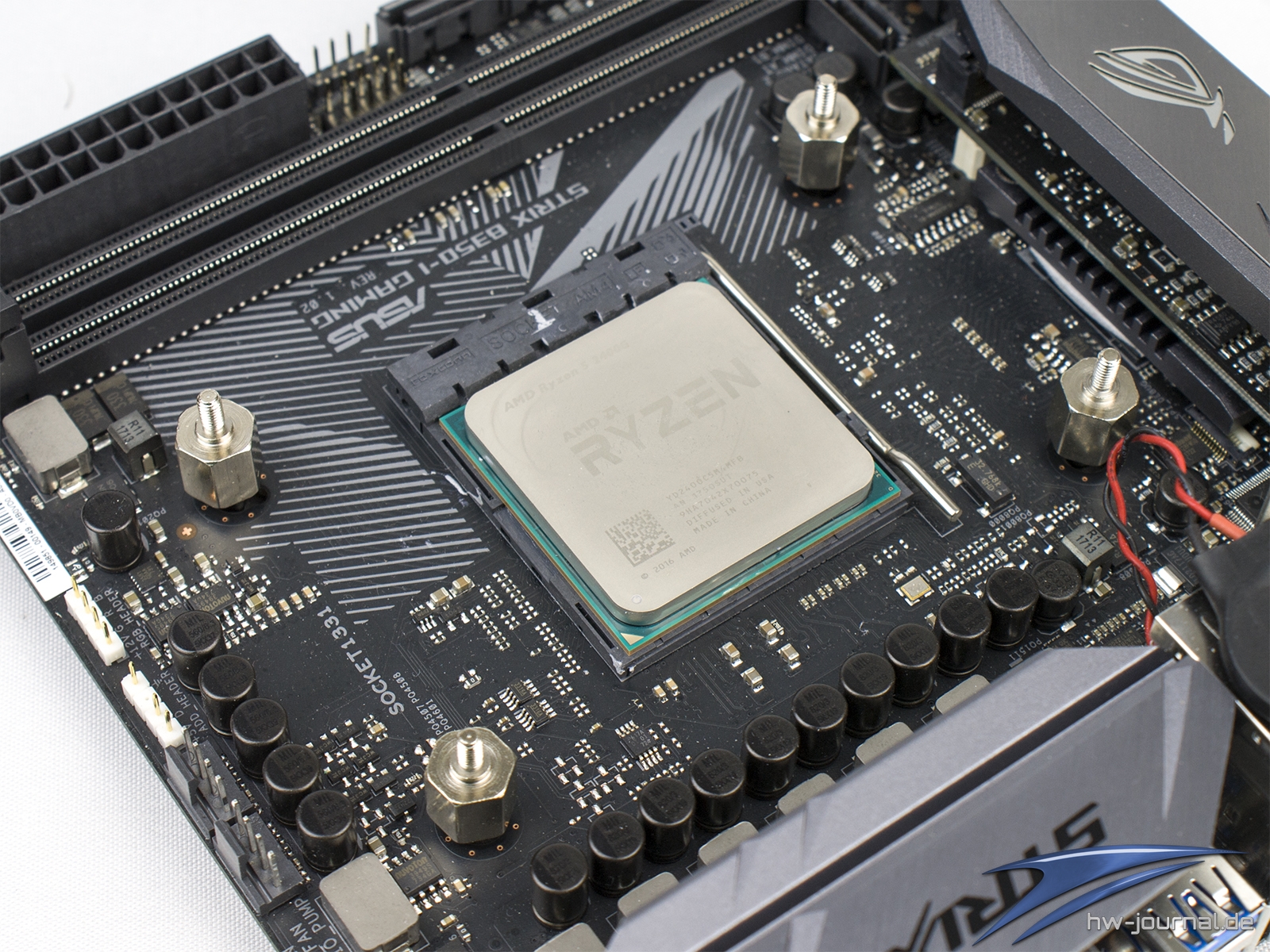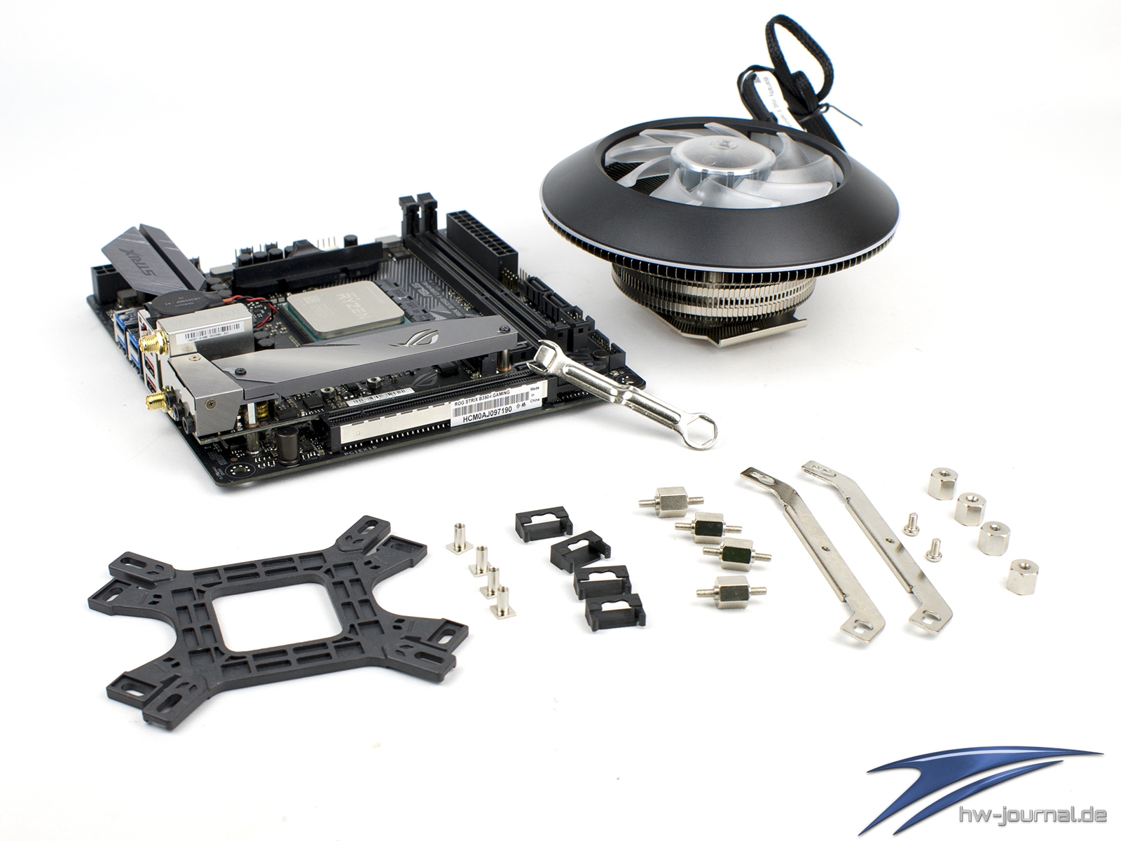 Für die Demonstration am Sockel AM4 haben wir uns direkt eine passende Platine ausgeguckt. Denn der MasterAir G100M ist durch seine Maße eigentlich perfekt für ein kleines System mit Mini-ITX Mainboard, was hier durch das ASUS ROG Strix B350-I Gaming gegeben ist. Der Ablauf ist dabei insgesamt beinahe identisch, weshalb wir uns kurz fassen.