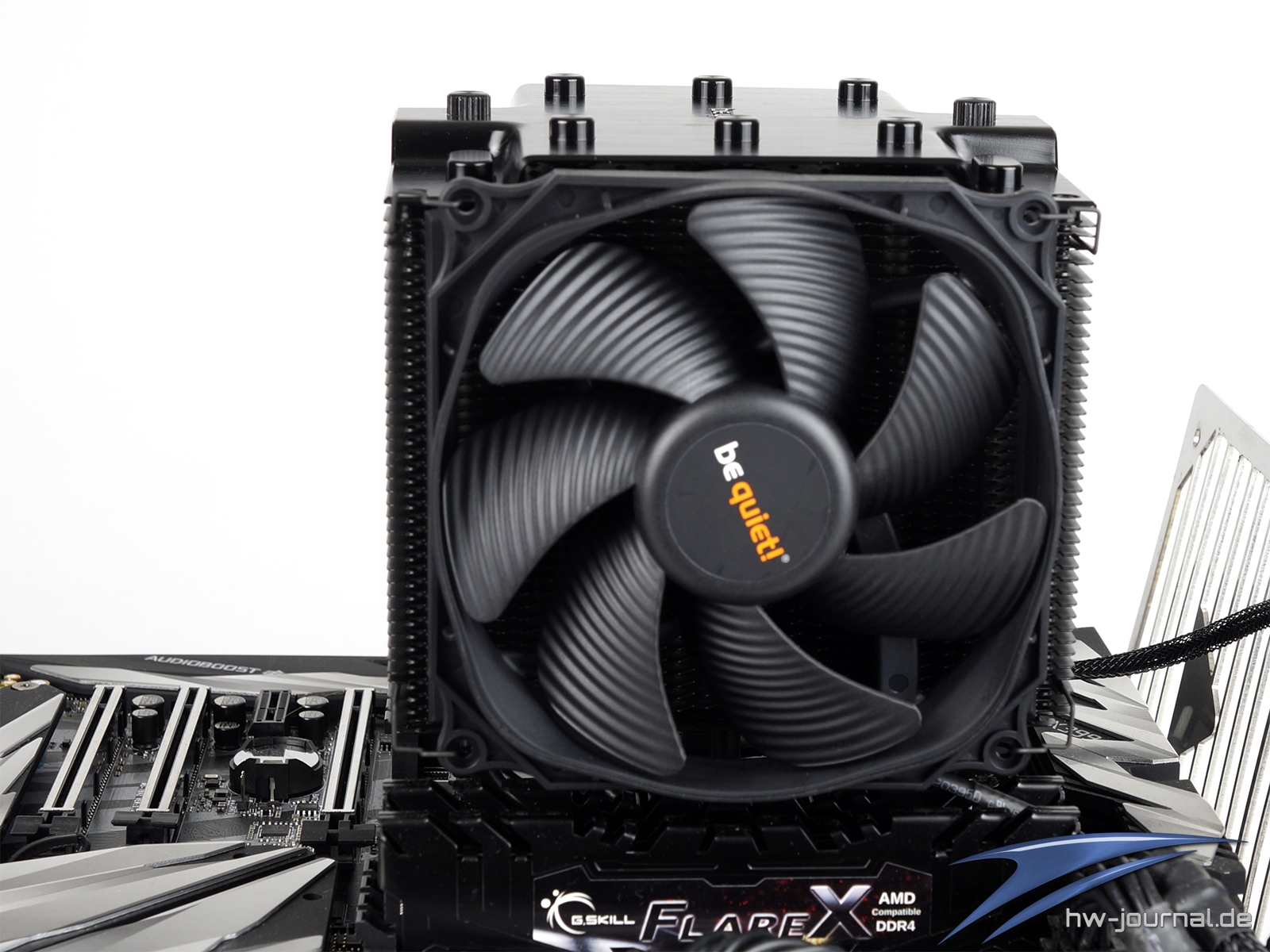 Wie angesprochen hat be quiet! durch den Versatz der Heatpipes mehr Platz für den RAM geschaffen. In der Höhe allerdings nicht. Das heißt, es ist zwar möglich, dass man den RAM auch im anschluss montiert, allerdings wiederrum mit etwas Gefummel und nur dann, wenn die Riegel relativ flach sind. Zudem sollte man den vorderen Lüfter demontieren.