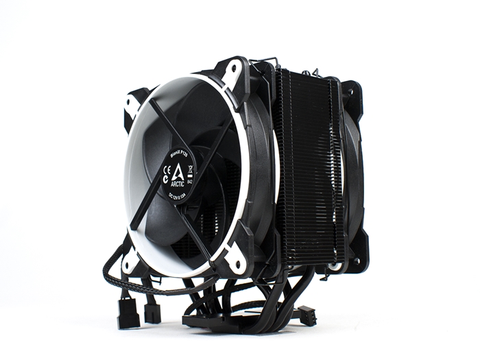 Eine der größeren Neuerungen betrifft die Lüfter. Hier werden nun die Arctic BioniX P-Lüfter verbaut. Das "P" steht dabei für Pressure, also einen hohen statischen Druck. Neben den hier gezeigten Modellen mit weißen Applikationen gibt es auch eine Variante mit roten Akzenten. Untereinander können die beiden Lüfter direkt verbunden werden, ein Y-Adapter entfällt somit.