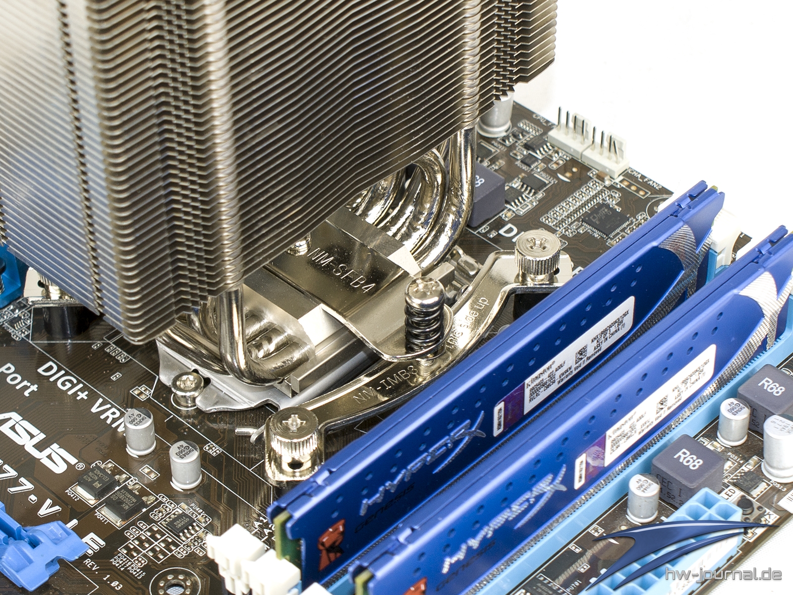 Was etwas schade ist, ist, dass aufgrund der neuen Maße die Chromax Blenden nicht mehr kompatibiel sind. Generell muss man sich mit der typischen Noctu-Optik zufriedengeben. Einen NF-A12x25 Chromax gibt es nämlich (noch) nicht. Grundsätzlich ist der Kühlturm durch die Vernickelung schon schick, allerdings könnten wir uns schon vorstellen, dass es vermehrt Nutzer gibt, die sich einen geschwärzten Turm oder/und Lüfter wünschen würden. Wir warten einfach mal ab, ob der Hersteller hier noch einmal etwas nachliefern wird.