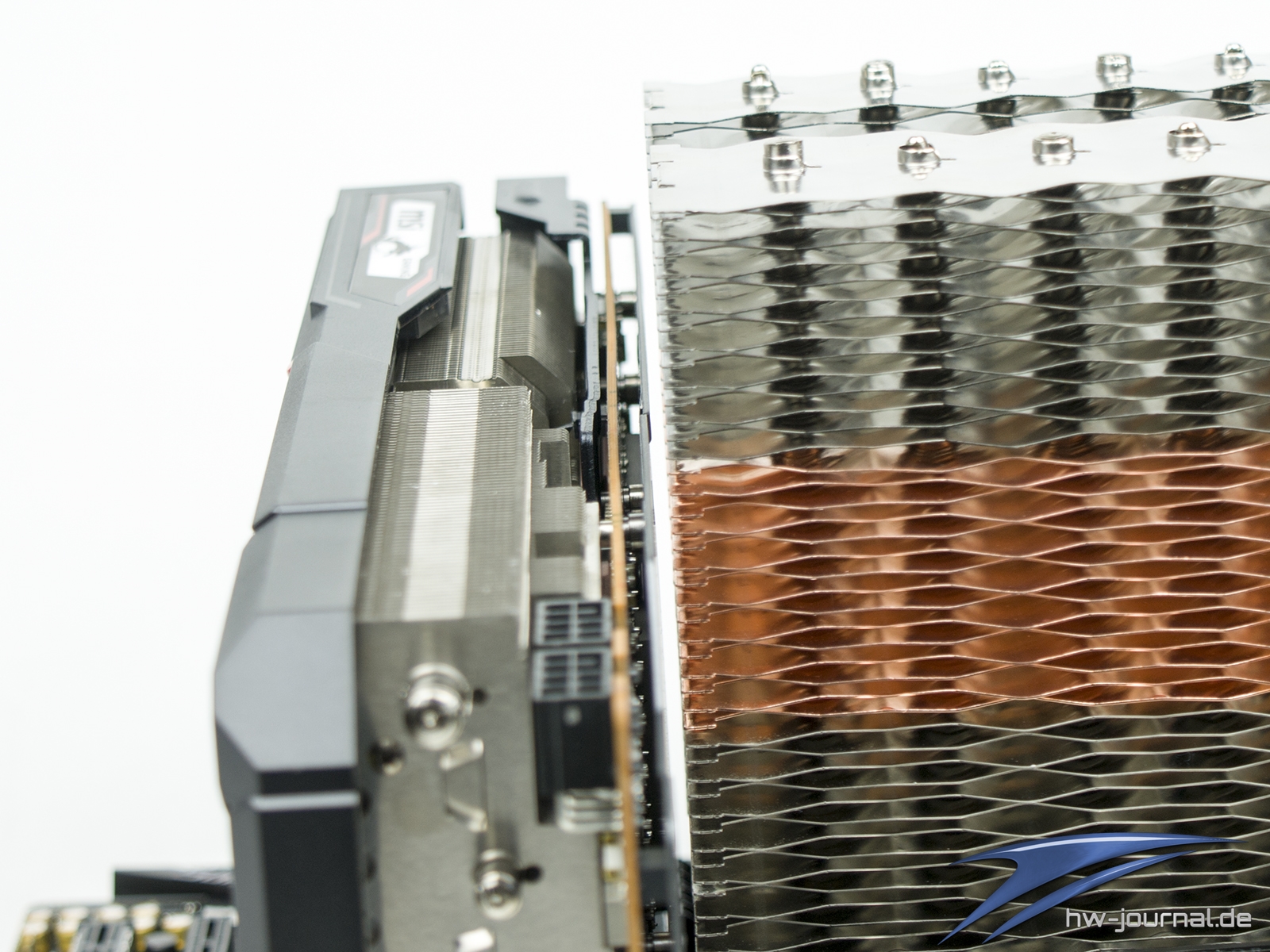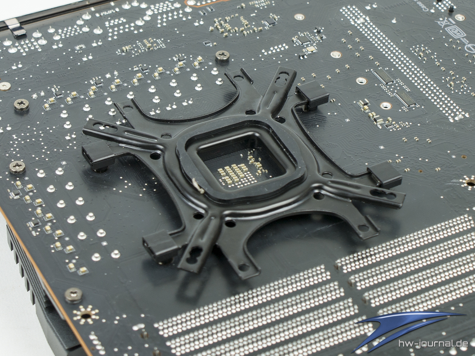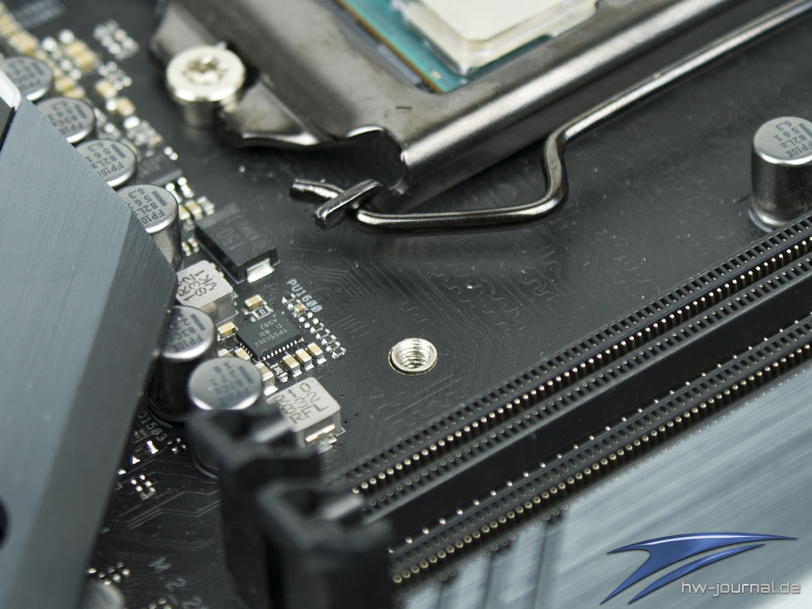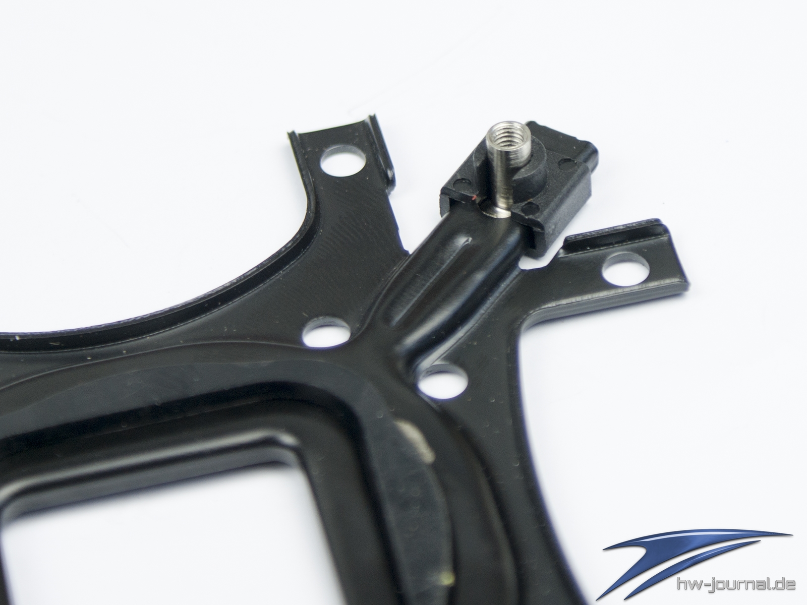 Insgesamt gesehen, gestaltet sich die Montage des Kühlers eigentlich einfach, aber es gibt ein paar Stellen, an denen es stockt oder eine Verbesserung sinvoll wäre. Die Vorbereitung der Backplate gestaltet sich bspw. eigentlich simpel, aber die schwarzen Clips hakten zum Teil ein wenig und es brauchte mehrere Anläufe um dei Hülsen sichern zu können. Dass die Backplate bei den Sockeln 115X etwas hakelig aufgelegt wird, soll nicht wirklich kritisiert werden. Gut gefallen haben die Unterlegscheiben, da diese ordentlich Futter bieten bzw. immer vor einer Beschädigung des Boards durch die Abstandshalter schützen. Die Rändelmuttern zum Befestigen der Brücken könnten auch gerne etwas größer ausfallen. Von Hand bekommt man sie zumindest nicht mit genügend Drehmoment angezogen. Zudem könnte man die Federschrauben des Kühlers am Kühler befestigen, damit man diese nicht fummelig zu den Löchern führen muss.