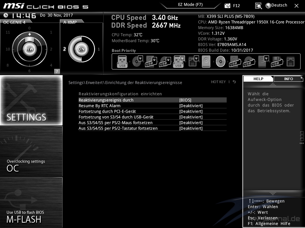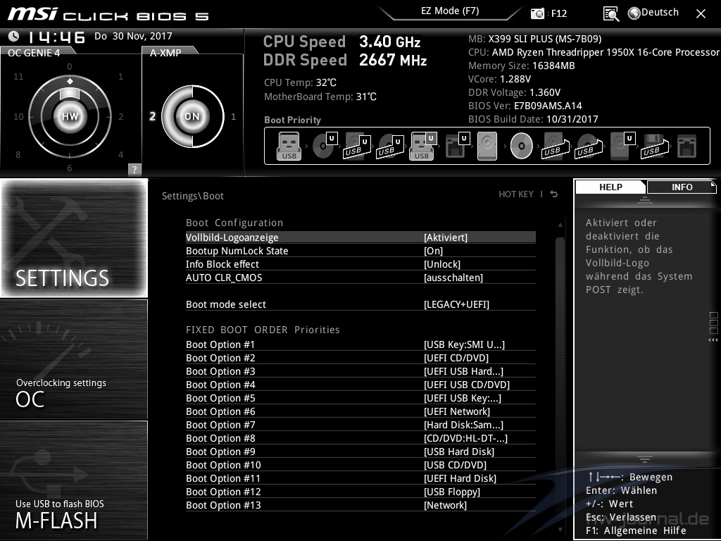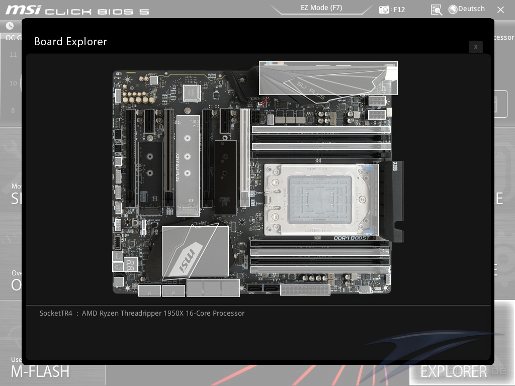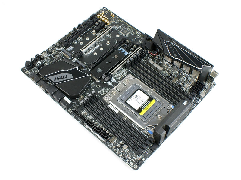 Beim Speicher wird nicht nur der MSI DDR4 Boost eingesetzt, sondern auch noch etwas Spielraum geliefert, die Bandbreite noch weiter zu erhöhen. Gleiches gilt für den CPU-Takt. Die Spannungsversorgung setzt auf hochwertige Bauteile von IR und dürfte ebenso etwas Spielraum für Übertaktung liefern. Der Kühler könnte unserer Meinung nach größer ausfallen, auch wenn der Platz an dieser Stelle wohl kein anderes Konstrukt zulassen würde. Eine Erweiterung mittels Heatpipe wäre auf jeden Fall eine Alternative. Schade ist auch, dass keine bessere Vorbereitung für Wasserkühlungen getroffen wurde (z. B. Wasserpumpen-Header). Denn der Abwärme einer Threadripper-CPU tritt man wohl am effektivsten mit eben dieser entgegen. Auch ist es schade, dass kein WLAN Modul verbaut wird.