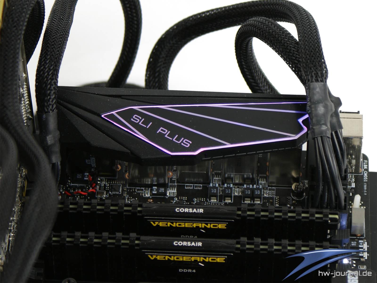 Beim Arbeitsspeicher können wir auf ein 16GB Kit aus dem Hause Corsair Vengeance LPX (CMX16GXM4B3200C16) zurückgreifen. Das mit bis zu 3200MHz taktende und zugleich 16GB (4x4) Quad-Channel-Kit ist für die Mehrheit der Tests bestens geeignet, wird für die Tests der TR4 Mainboards jedoch mit 2666MHz und damit in den Spezifikationen von AMD betrieben. Als primärer Datenträger kommt ein Samsung 850 Evo 250GB zum Einsatz, welche durch ein Samsung 960 Evo 250GB ergänzt wird, damit der M.2 Steckplatz auch an seine Grenzen geführt werden kann.
