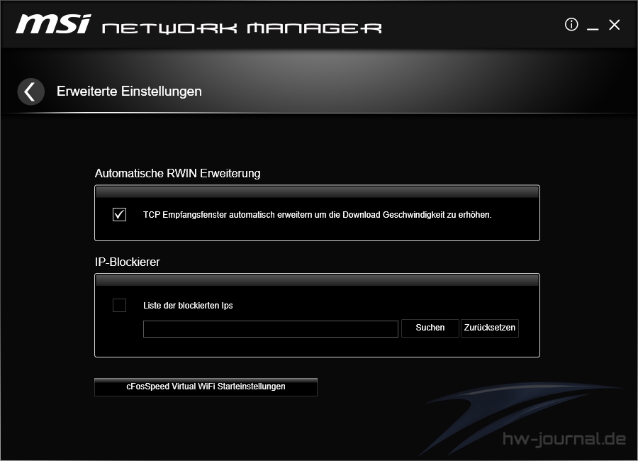 Der MSI Gaming Lan Manager ist auch ein Programm, welches Gamern zugutekommt. Ist er aktiviert, werden Spiele automatisch gegenüber anderen Anwendungen priorisiert und können somit mehr Bandbreite nutzen. Man hat aber auch die Möglichkeit, die Einstellungen den eigenen Bedürfnissen anzupassen und kann somit Priorisierung und Bandbreite für einzelne Anwendungen gezielt vorzunehmen.