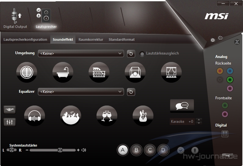 Das MSI X399 SLI Plus setzt zwar auf den Realtek ALC1220, wie bspw. X370 XPower Gaming Titanium, X299 Gaming M7 ACK und X299 XPower Gaming AC, jedoch kommt hier leider nicht die Nahimic 2 Software zum Einsatz. Der etwas einfachere Sound Manager liefert allerdings auch viel Umfang um den Klang des Audio Boost 4 anzupassen bzw. vollends auszureitzen. Der Soundchip in Verbindung mit dem Kopfhörerverstärker erkennt dabei sogar, welche Impedanz die angeschglossenen Kopfhörer aufweisen, um hier die perfekte Ansteuerung zu gewährleisten.