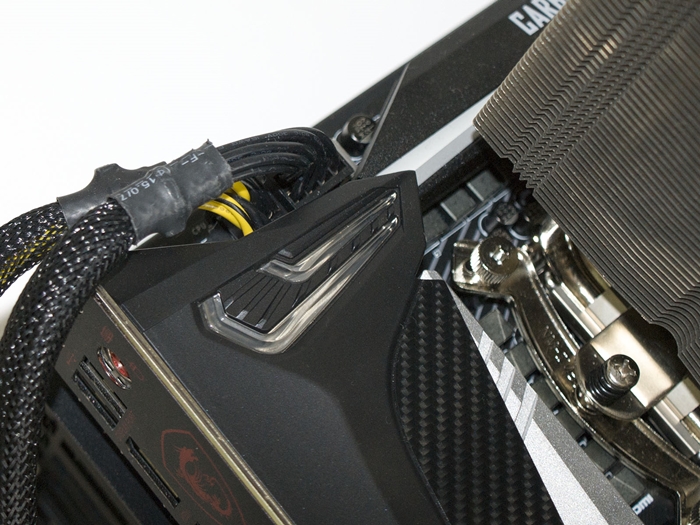 Beengt geht es zudem bei den beiden Stromsteckern zu. Hat man das Board in einem engen Midi-Tower wie bspw. dem Corsair Carbide SPEC-Omega RGB verbaut, kommt man an diese beiden Stecker aufgrund der umliegenden Kühler und Blenden nur sehr schwer ran. Gleiches gilt für den CPU-Lüfter-Stecker. Gerade auch mit montiertem CPU-Kühler, sind die besagten Stecker nur schwer zugänglich.