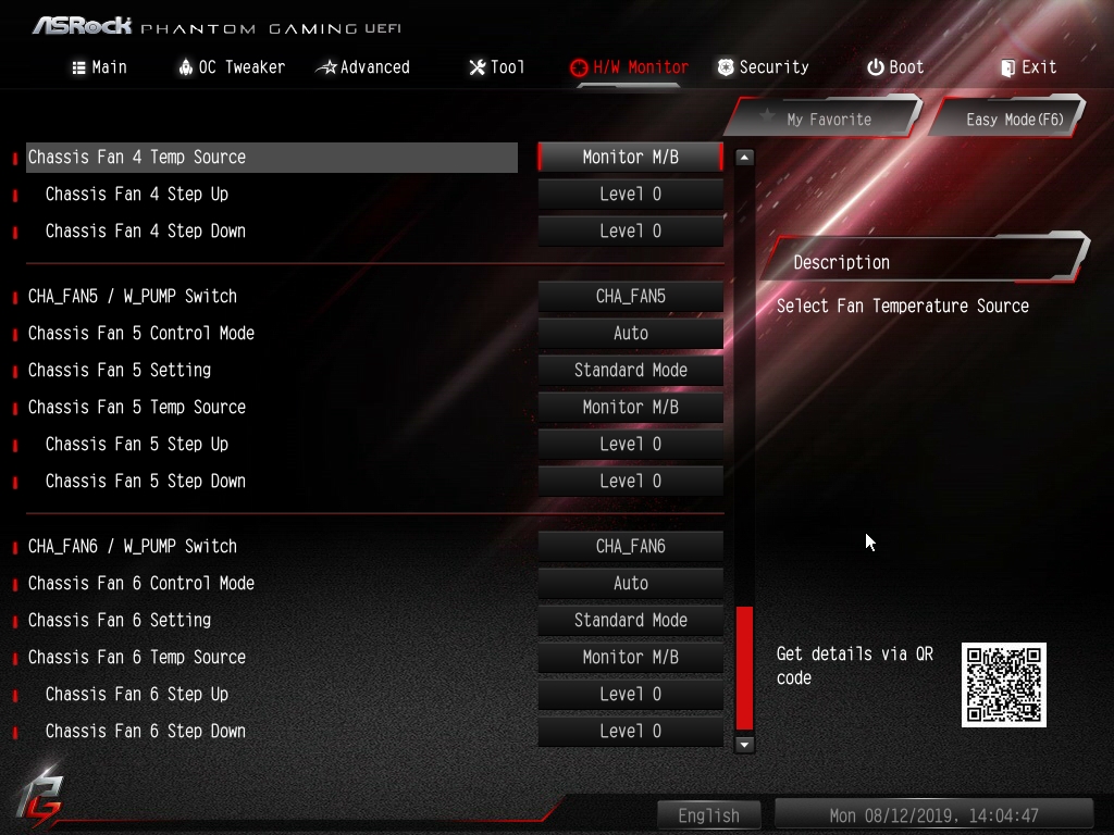 Unter H/W Monitor kann man nicht nur die Temperatur-Werte auslesen, sondern vor allem auch die zahlreichen Fan-Header einrichten. Zunächst muss man sich entscheiden, ob eine Pumpe oder ein Lüfter angeschlossen ist, dann kann man noch manuell wählen ob es sich um einen DC oder PWM angesteuerten Motor handelt, wobei dies auch automatisch erkannt wird, dann kann man ein Profil auswählen und als letztes ein Sensor zuordnen, wobei nur CPU und Mainboard zur Auswahl stehen. Natürlich können auch hier die Lüfter zunächst eingemessen werden, was auch sinnvoll ist. Ansonsten passend die vordefinierten Kurven womöglich gar nicht zum eingesetzten Modell.
