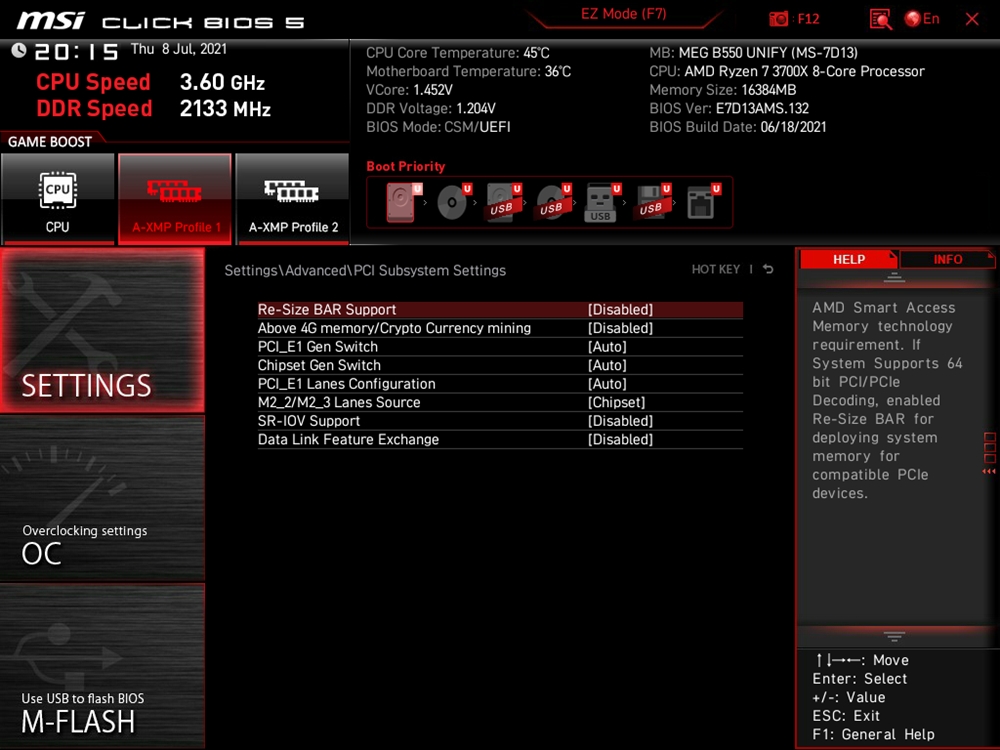 Das Bios des MSI MEG B550 Unify kommt in gewohnter Optik. Alle Einstellungen finden sich and er gewohnten Stelle des Click Bios 5 wieder. Im Gegensatz zum MSI MPG Z590 Gaming Carbon WIFI hat das vorliegende Mainboard in der neusten Bios-Version allerdings noch den Board-Explorer statt des Beta Runner. Ob dies überhaupt bei AMD bzw AM4 einziehen wird, muss sich aber noch zeigen. Interessant ist beim vorliegenden Mainboard natürlich die Einstellung zu den Lanes. Unter Settings - Advanced kann man einstellen, von welcher Stelle die M.2 Steckplätze ihre Lanes beziehen. Die OC-Funktionen sind natürlich auch sehr umfassend, das ist mittlerweile aber eigentlich bei fast allen Mainboards von MSI der Fall.