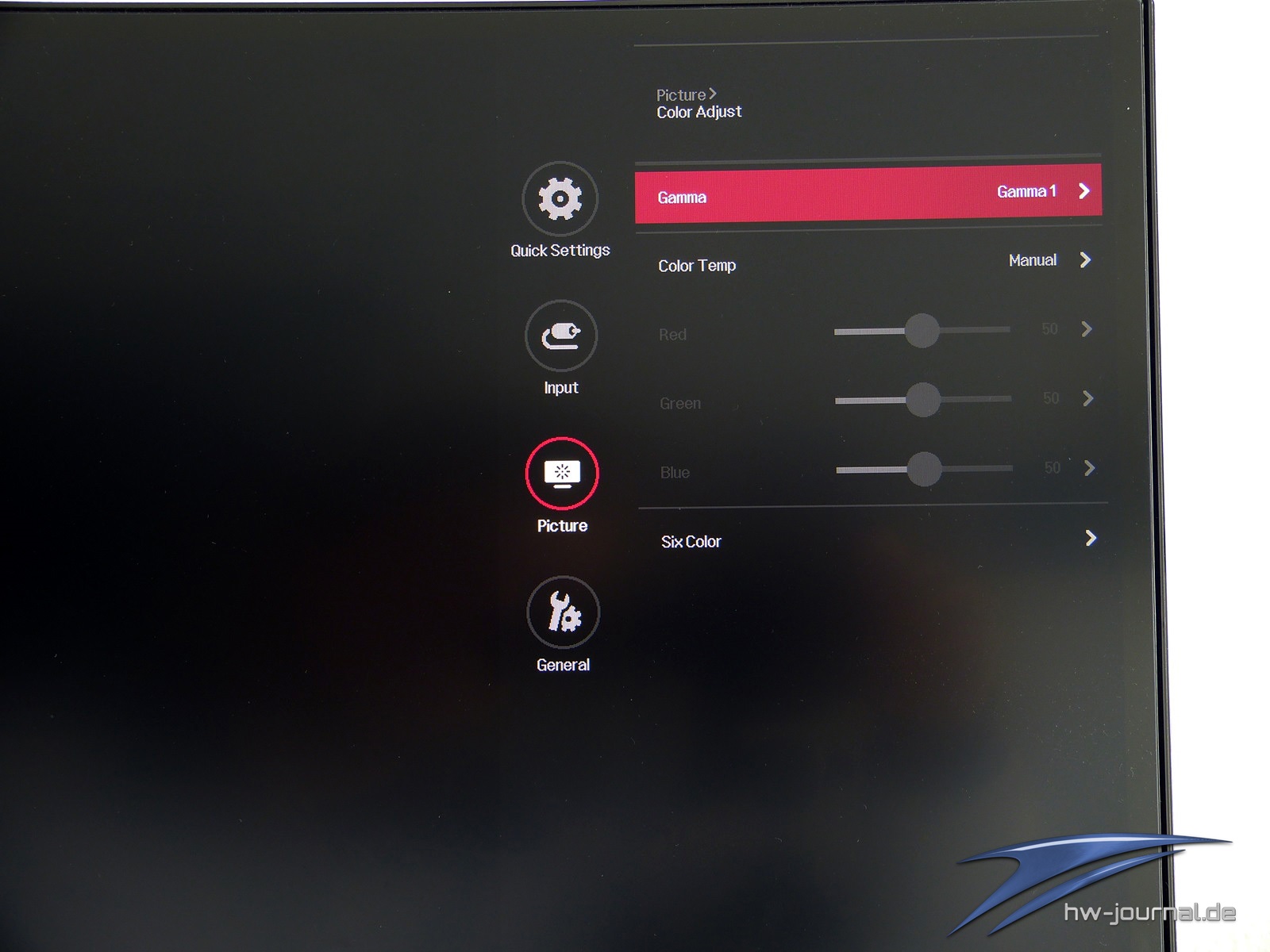 Zu den Einstellungen zählen u.a. der Black Stabilizer oder OverDrive. Des Weiteren wird eine 6-Achsen-Farbkorrektur zur Verfügung gestellt, was insbesondere für die Bildbearbeitung interessant ist. Seine Einstellungen kann man in einem Custom-Profil hinterlegen, leider nicht in mehreren.